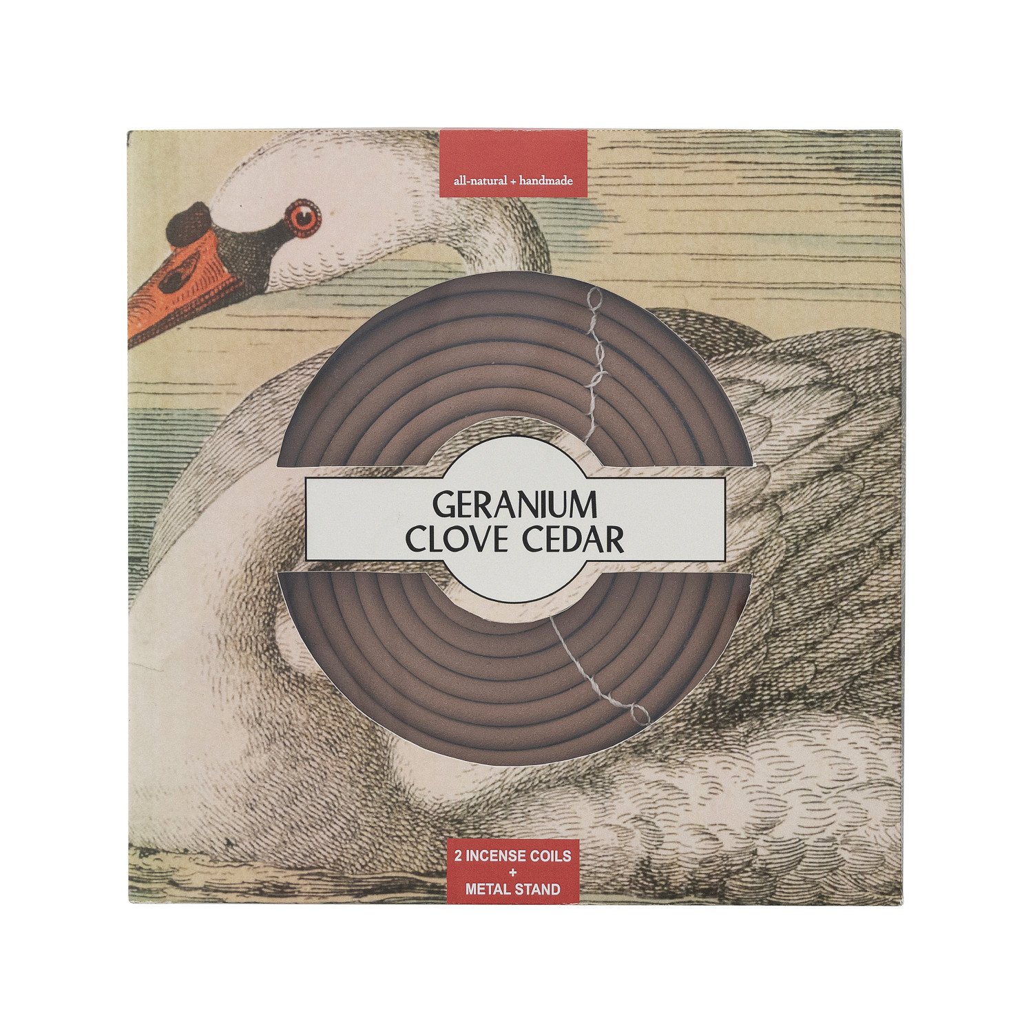 Catalog Name: 7-1/2" 2 Piece Round All Natural Handmade Geranium Clove & Cedar Scented Outdoor Hanging Incense Coils w/ 9-1/2" Round x 9"H Metal Stand, Set of 3 in Printed Box (Est. 20 Hour Burn Time)