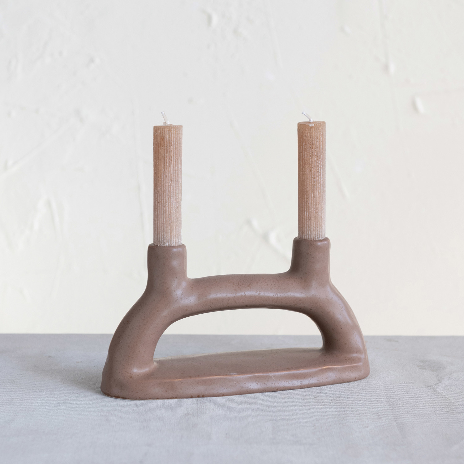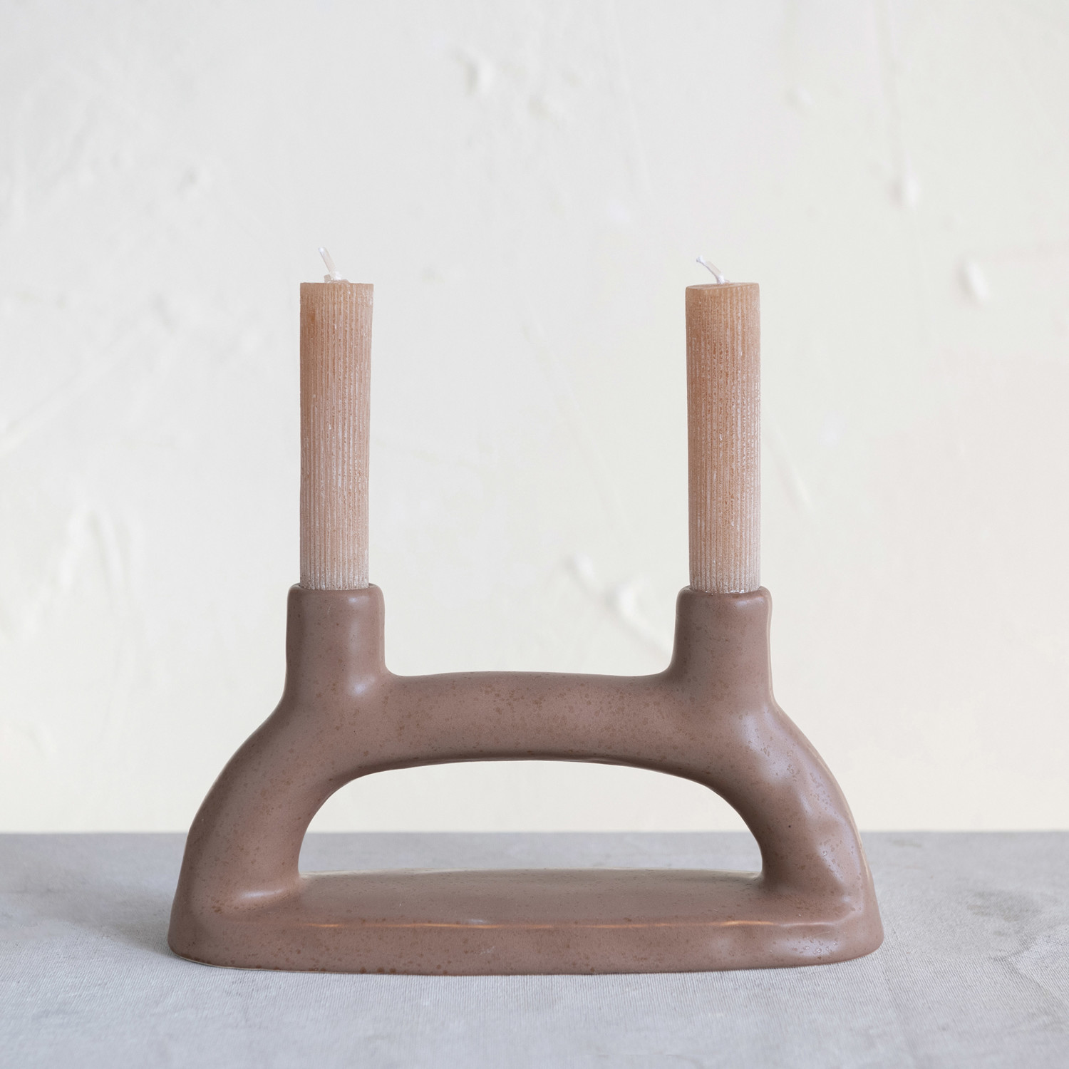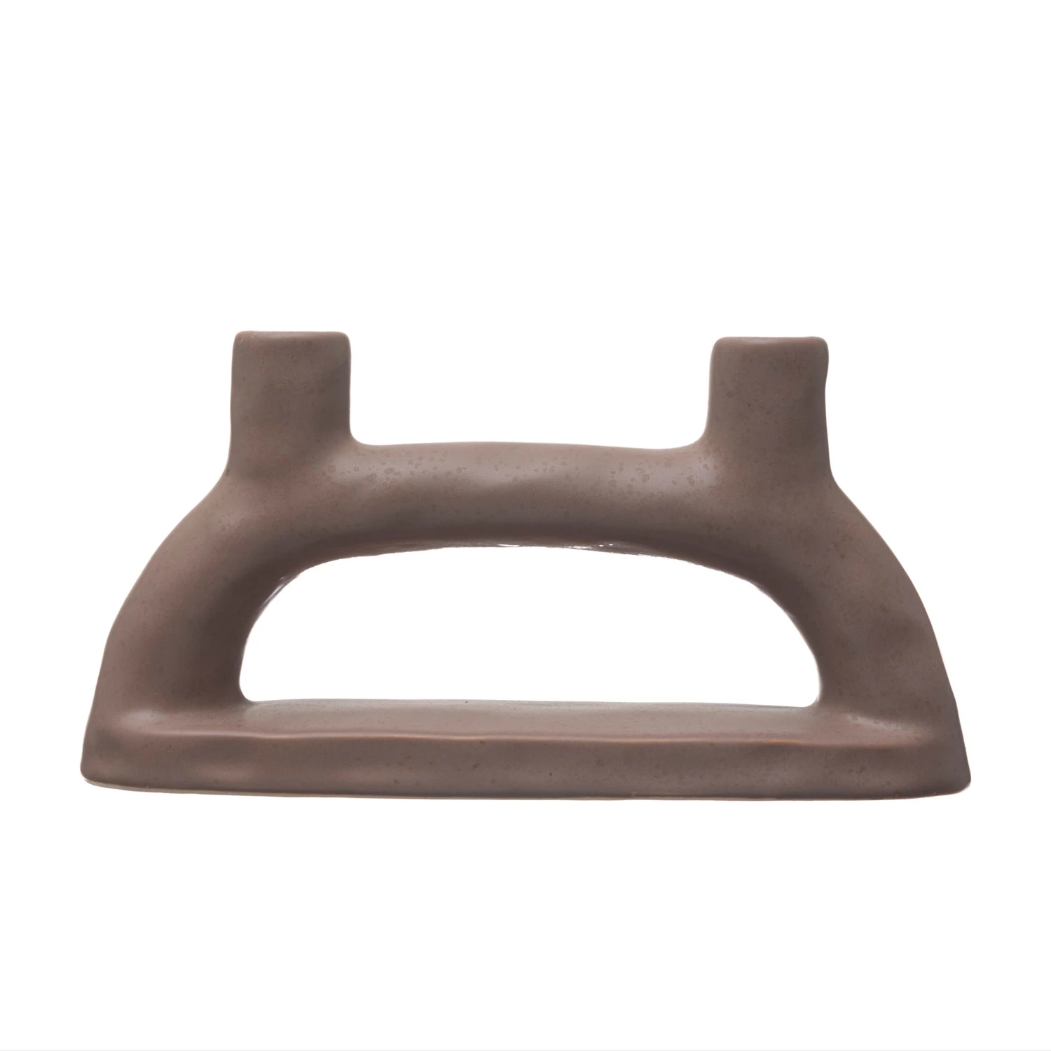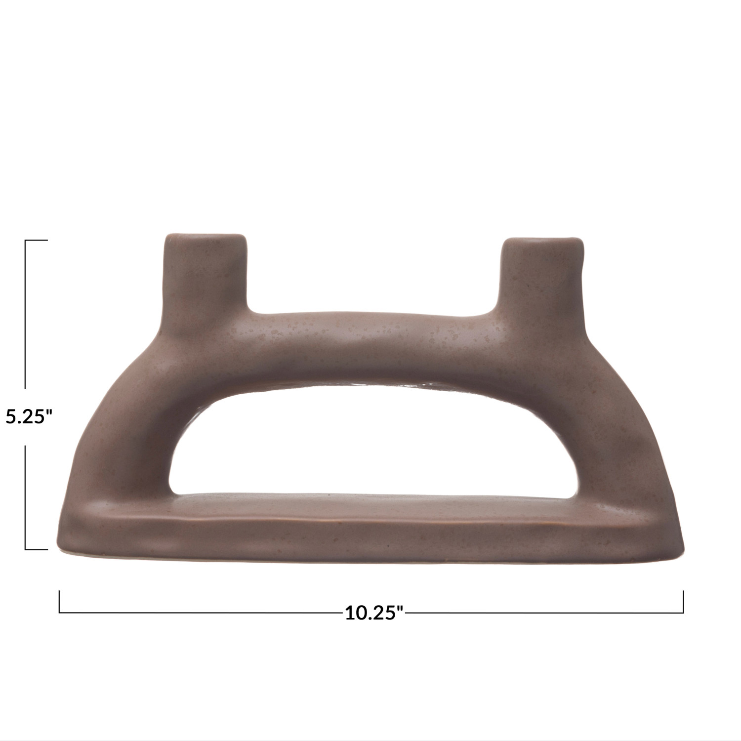 Catalog Name: 10-1/4"L x 3-1/4"W x 5-1/4"H Stoneware Double Taper Holder, Matte Brown