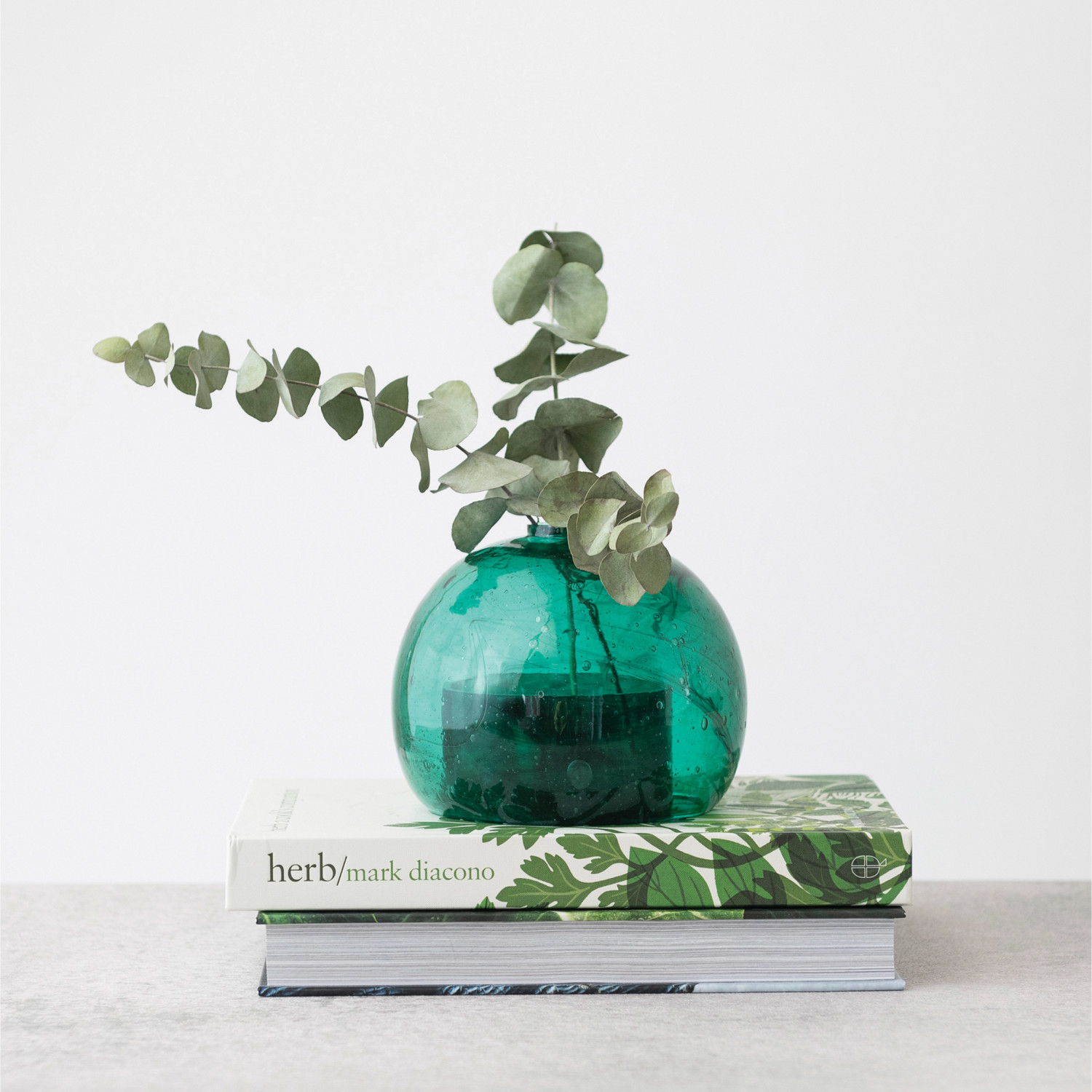 Catalog Name: 6" Round x 5"H Glass Tealight Holder/Vase w/ Cloche, Teal Color, Set of 2