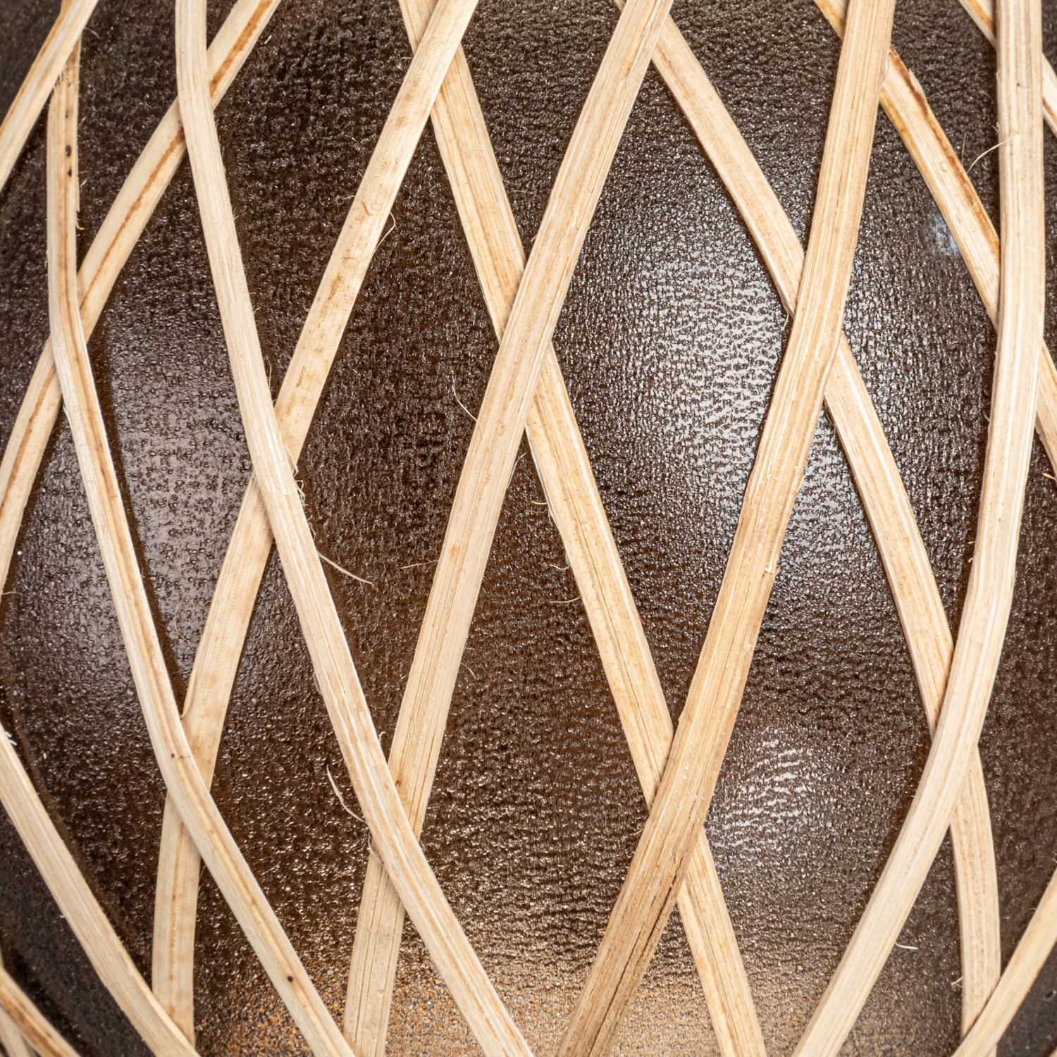 Catalog Name: 5-1/4" Round x 5"H Woven Rattan & Glass Votive Holder, Brown & Natural