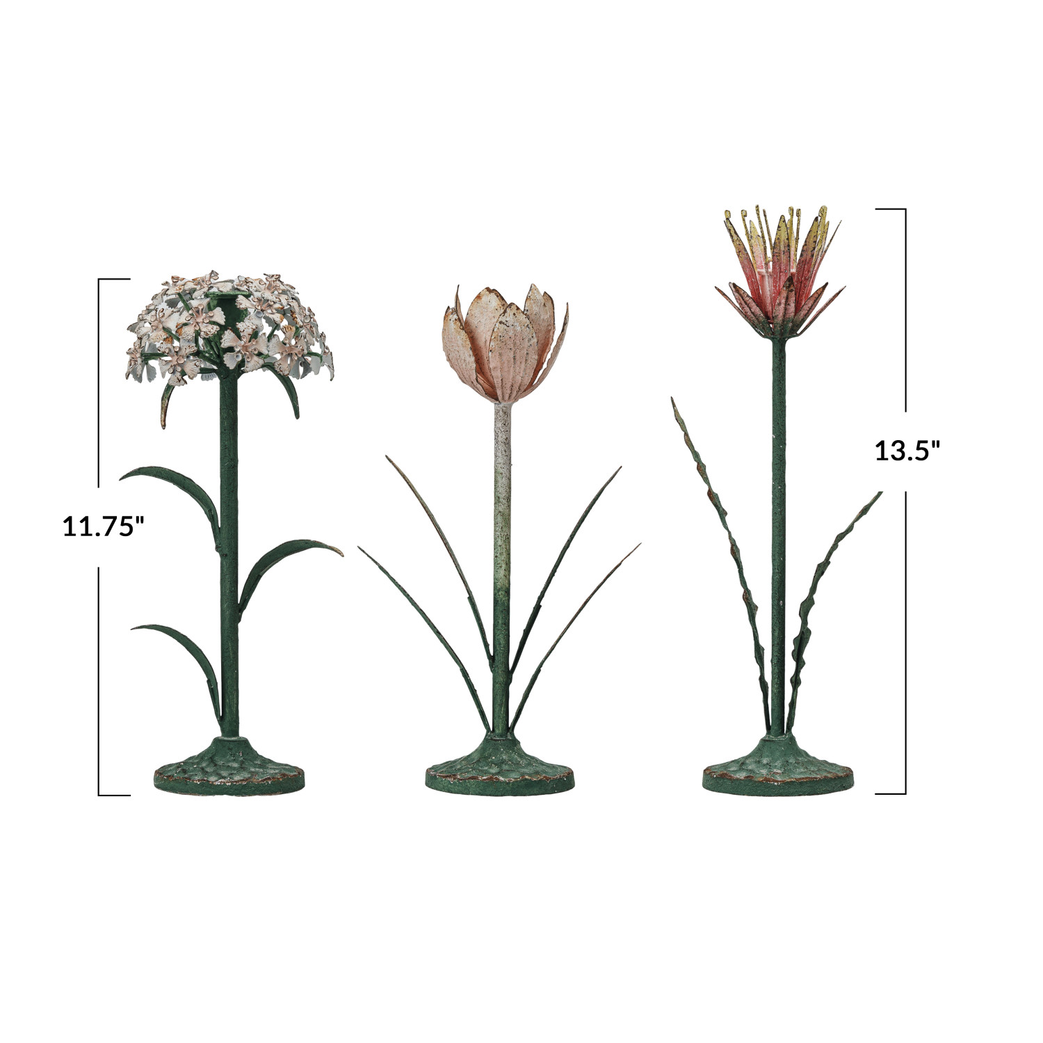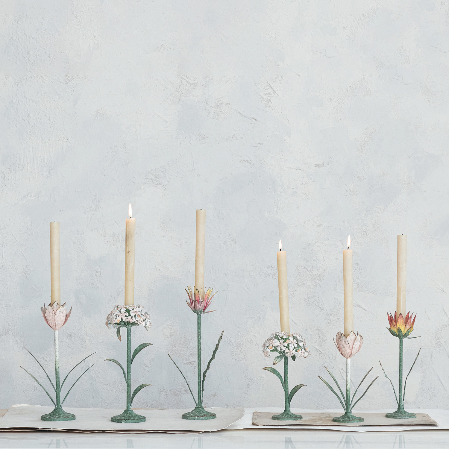 Catalog Name: 11-3/4"H - 13-1/2"H Hand-Painted Metal Vintage Reproduction Toleware Flower Shaped Taper Holder, Distressed Finish, Multi Color, 3 Styles