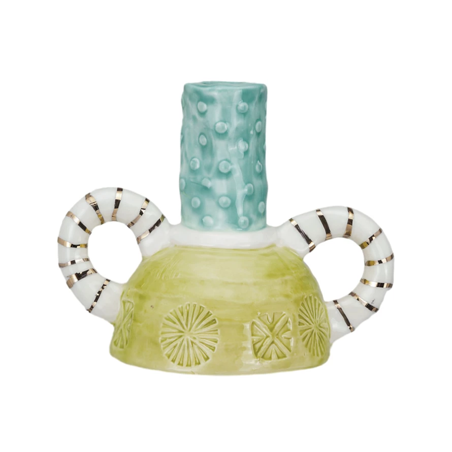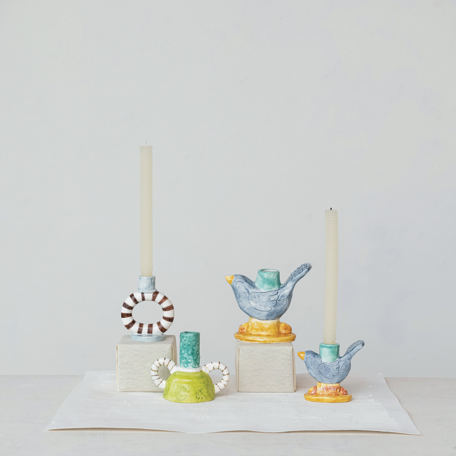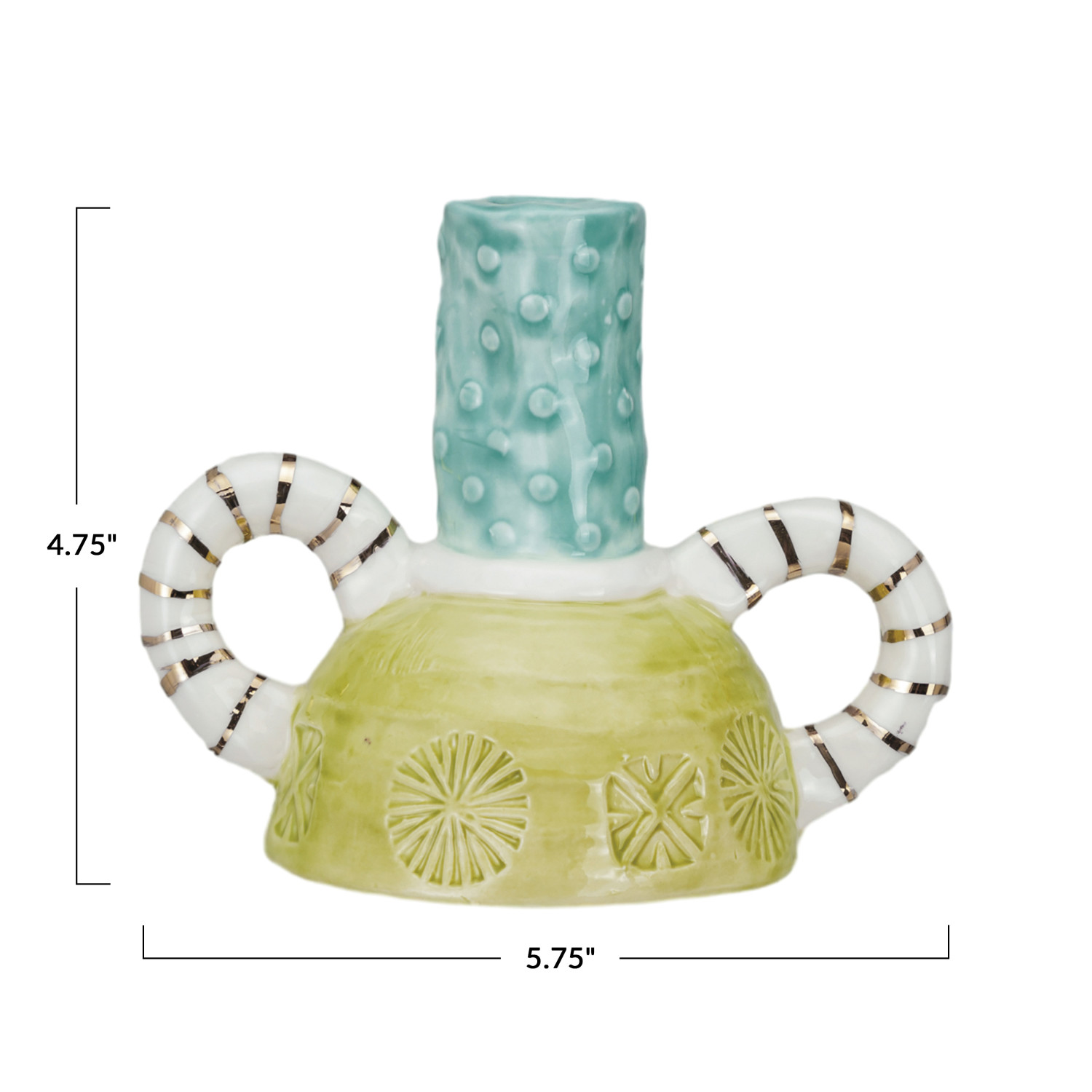 Hand-Painted Stoneware Taper Holder w/ Handles (Each One Will Vary) ©