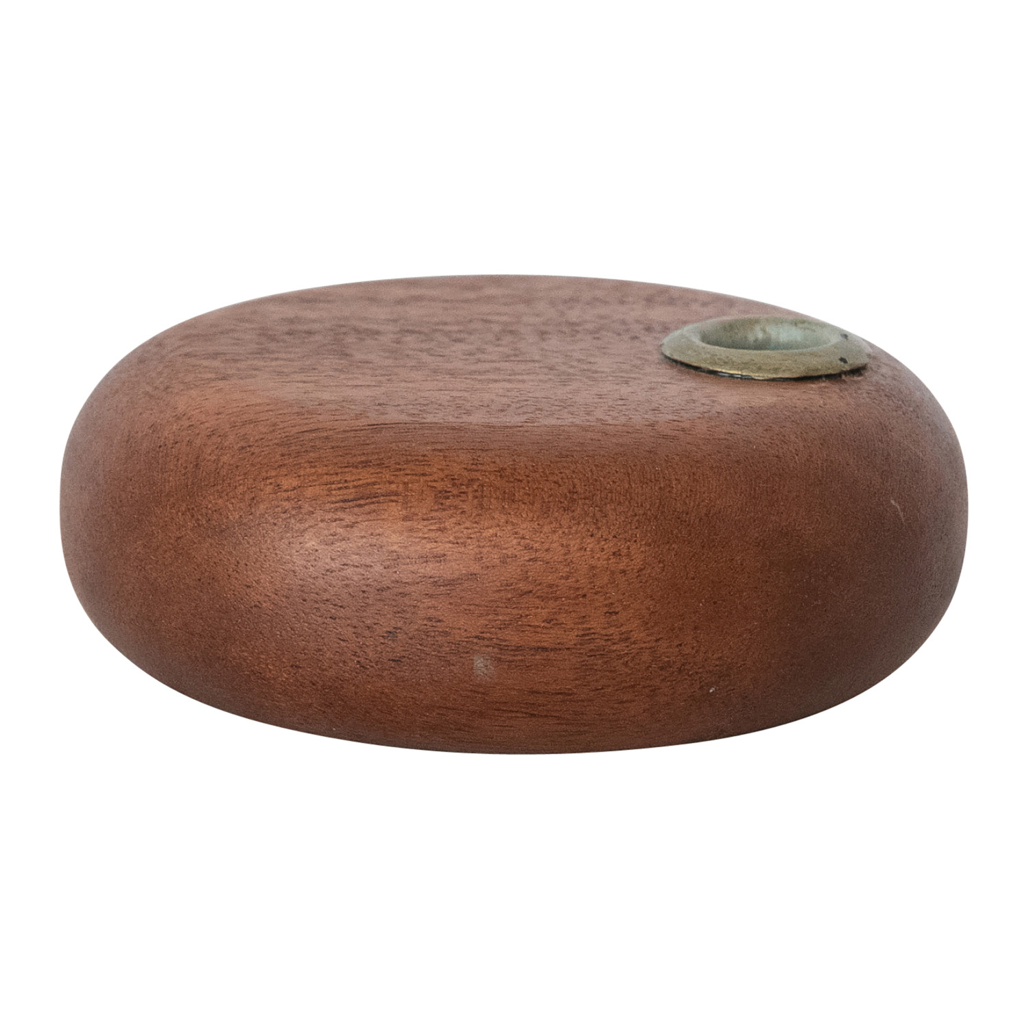 Catalog Name: 3-1/2" Round x 1-1/4"H Mango Wood & Metal Taper Holder, Gold Finish & Natural (Holds 1/2" Taper)