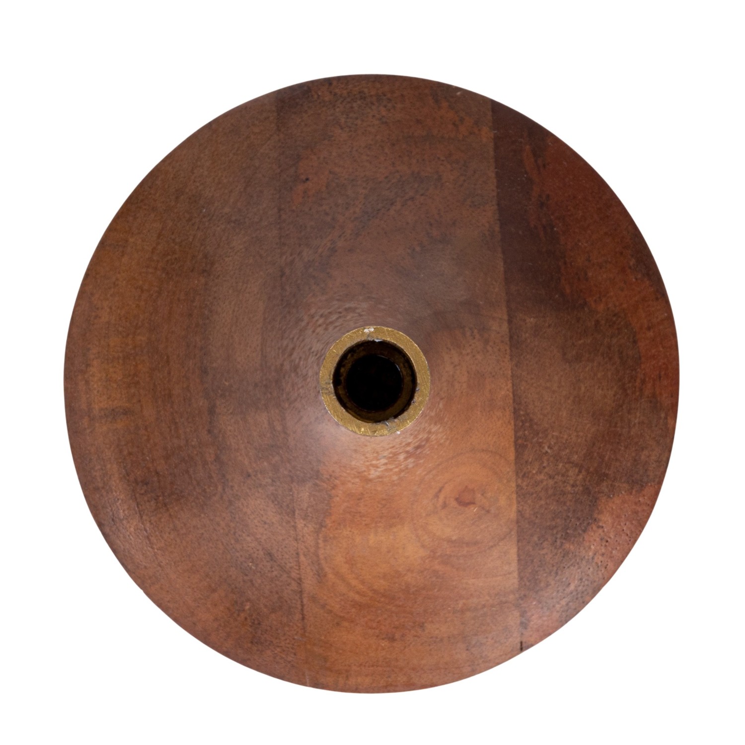 Catalog Name: 4" Round x 4-1/2"H Mango Wood & Metal Taper Holder, Gold Finish & Natural (Holds 1/2" Taper)