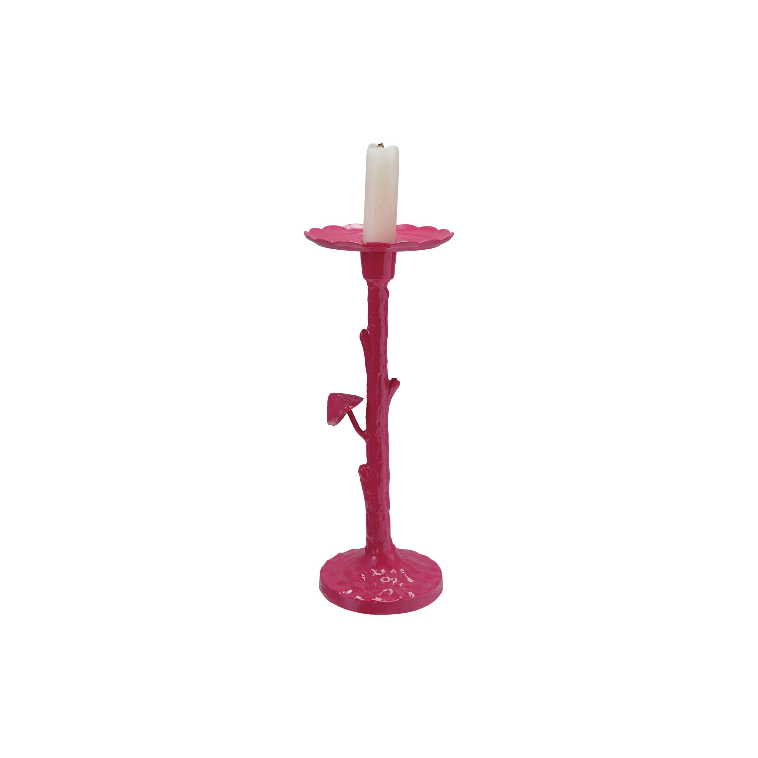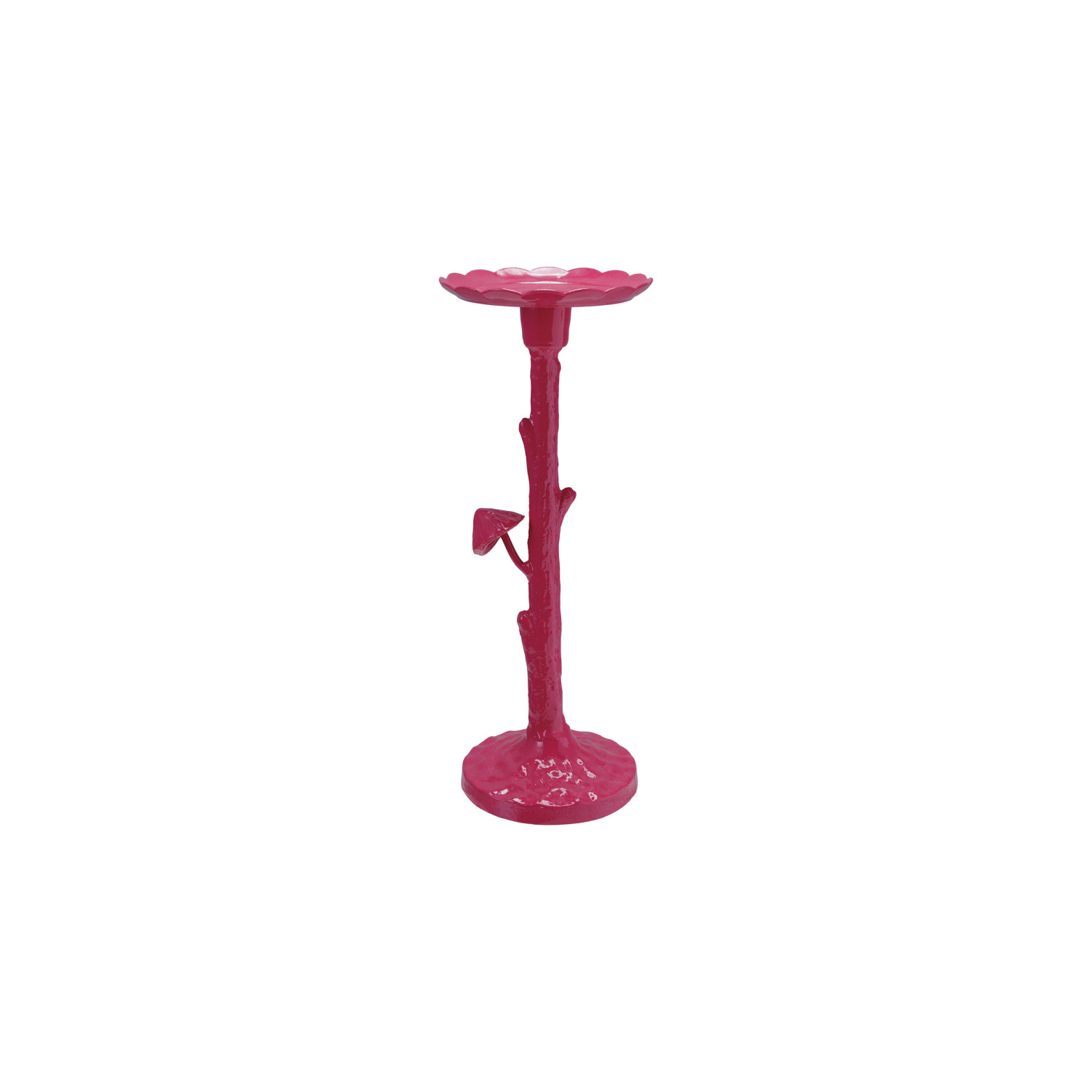 Catalog Name: 3-3/4" Round x 10"H Cast Iron Twig Taper/Candle Holder w/ Mushrooms, Fuchsia Color (Holds 3" Pillar/Standard Taper)
