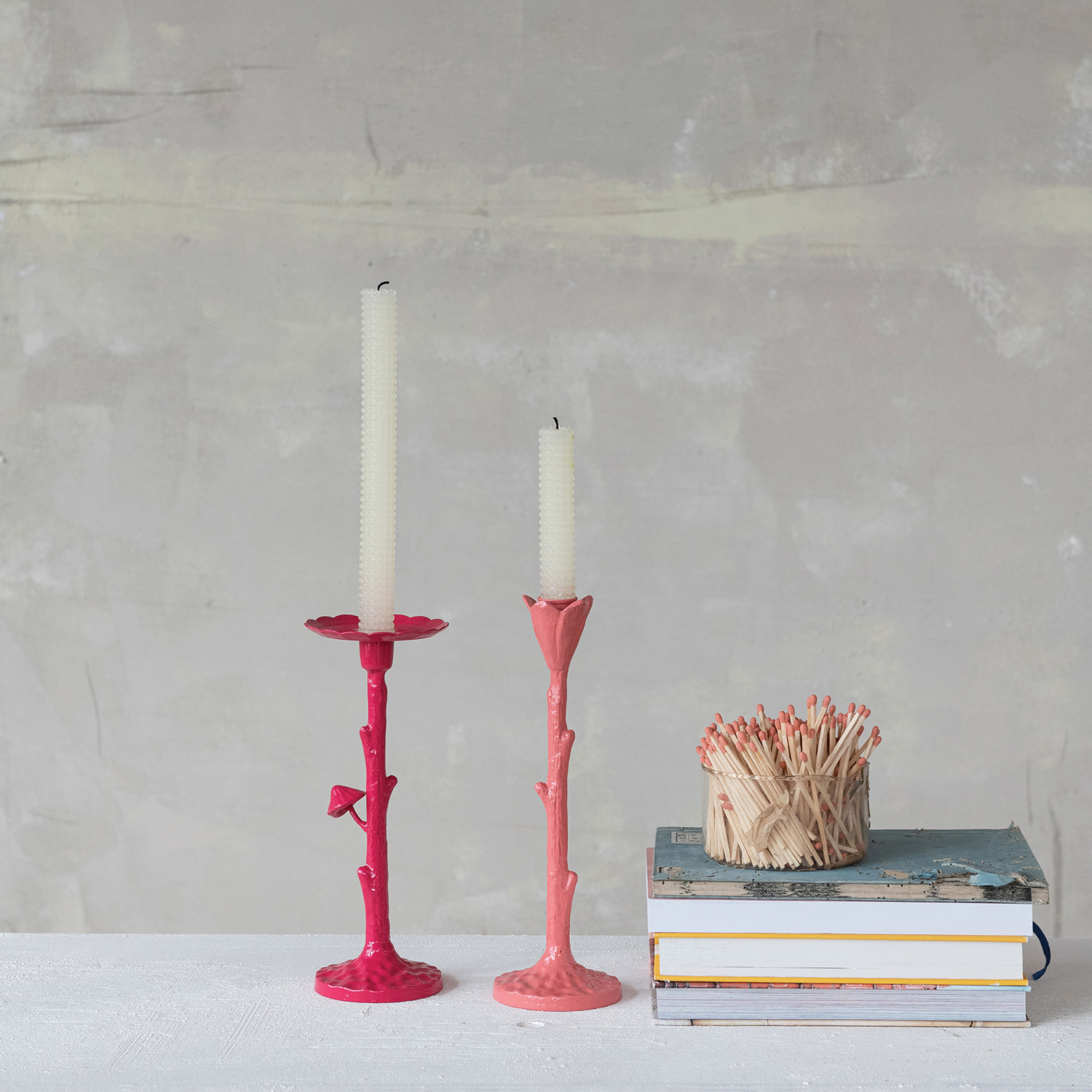 Cast Iron Flower Shaped Taper Holder, Fuchsia Color