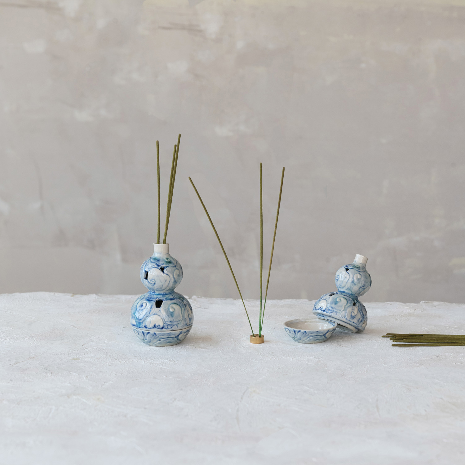 Embossed Incense Holder with Metal Insert, Set of 2 (Each Varies)
