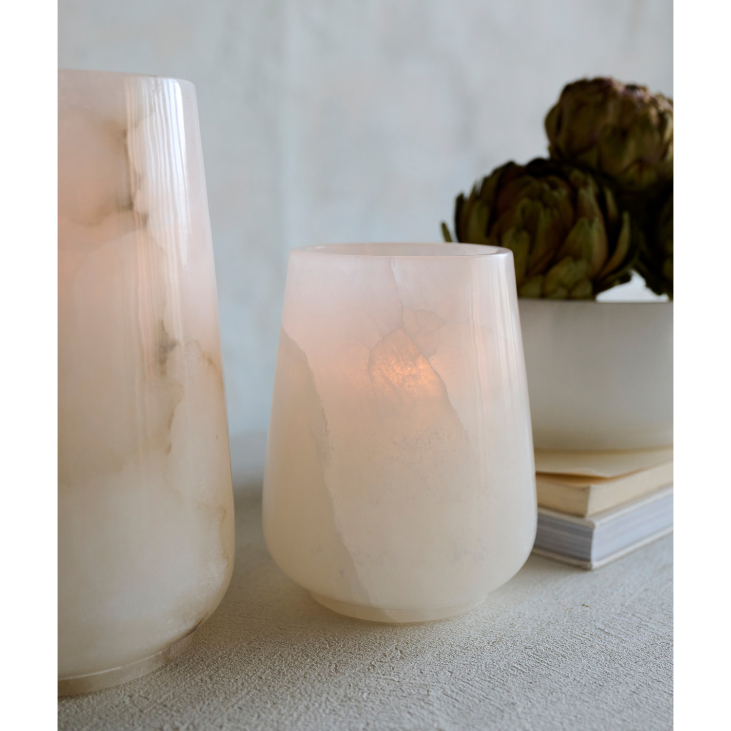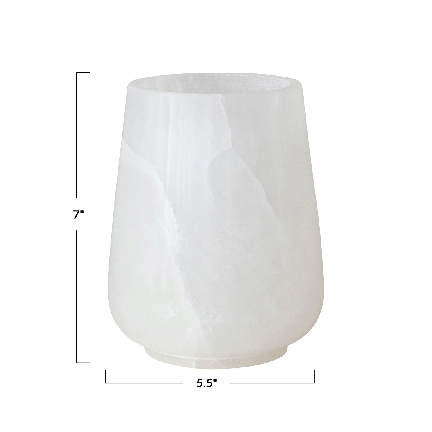 Alabaster Candle Holder/Vase, White (Each One Will Vary)