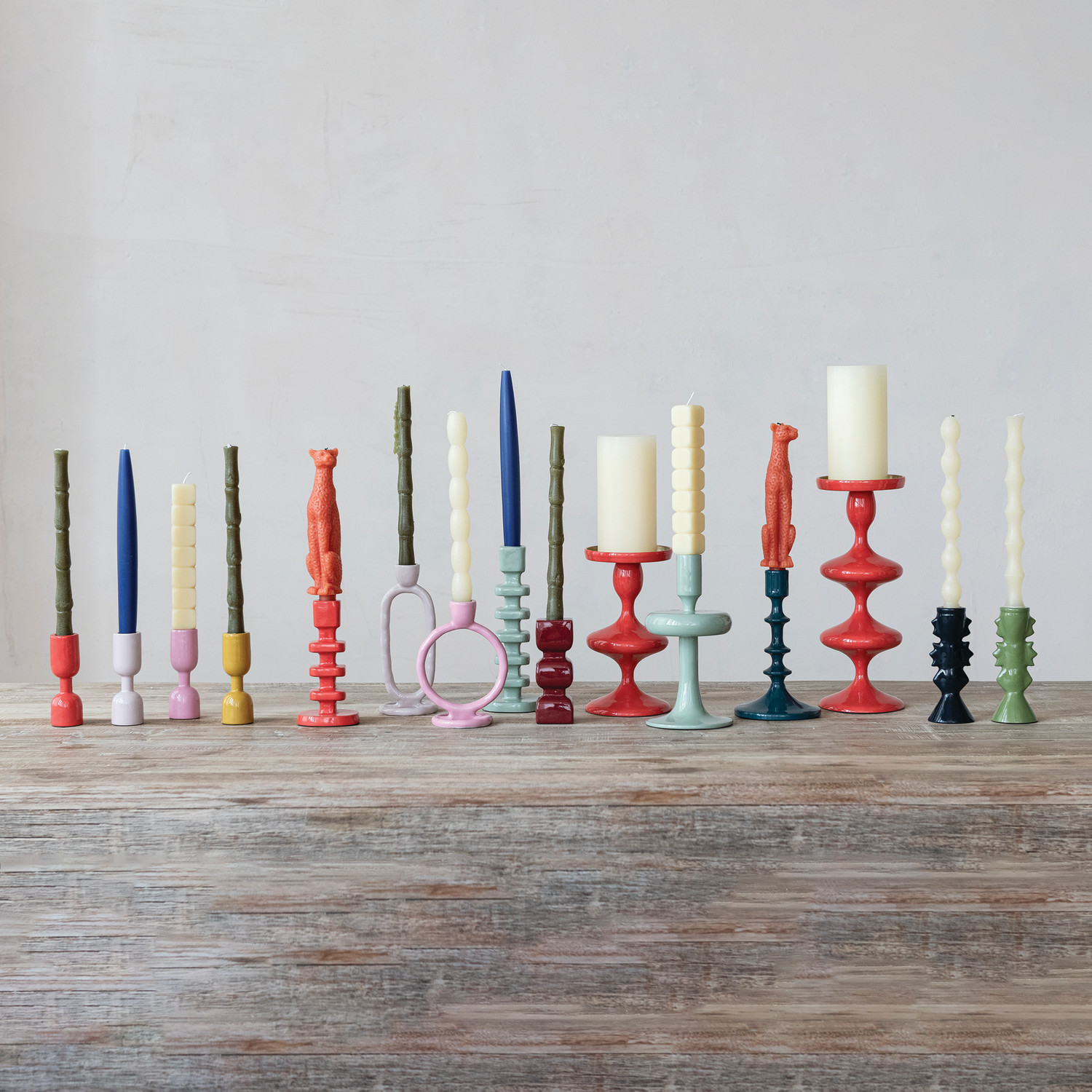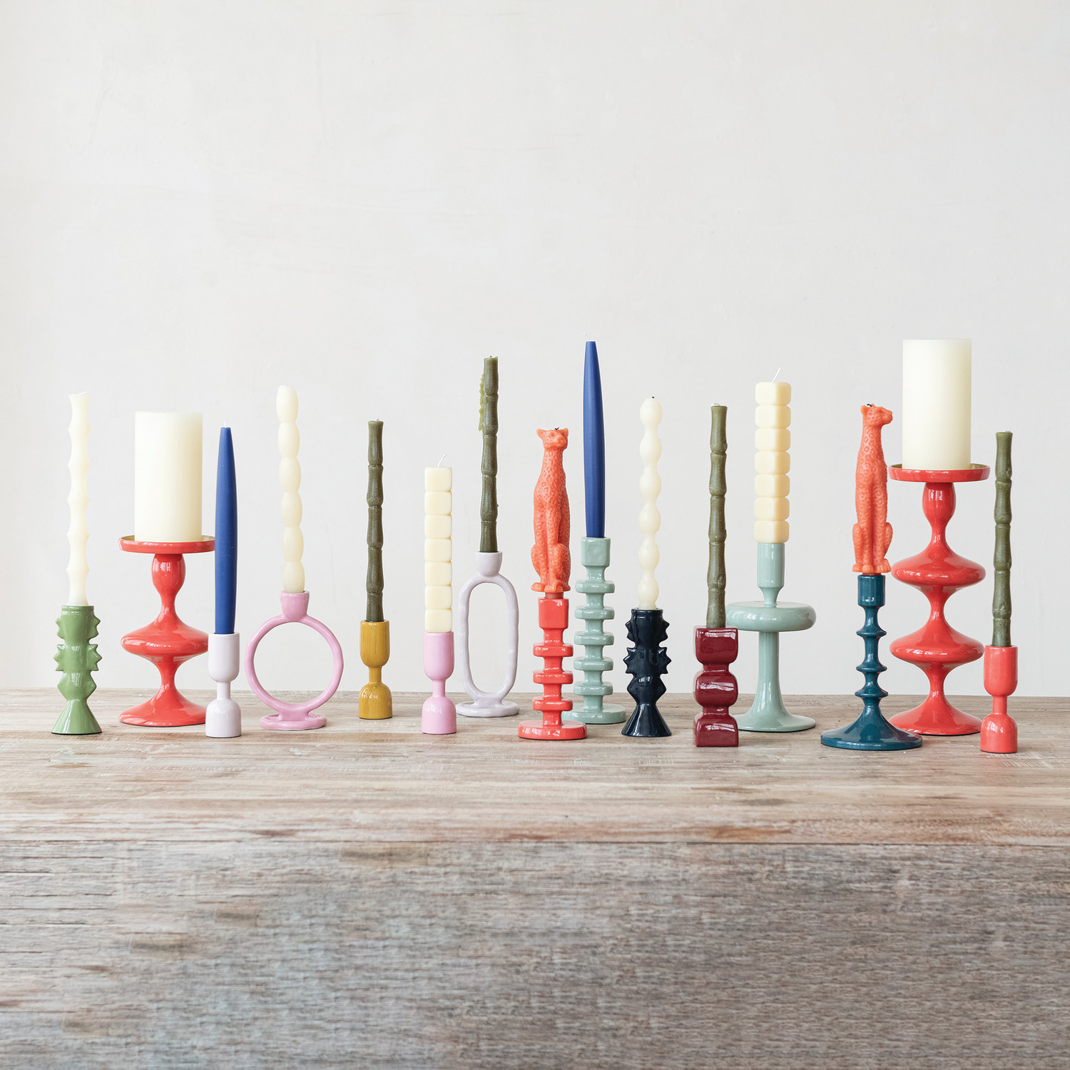 Catalog Name: 3" Square x 6"H Enameled Aluminum Taper Holder, Coral Color