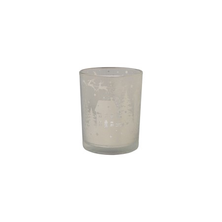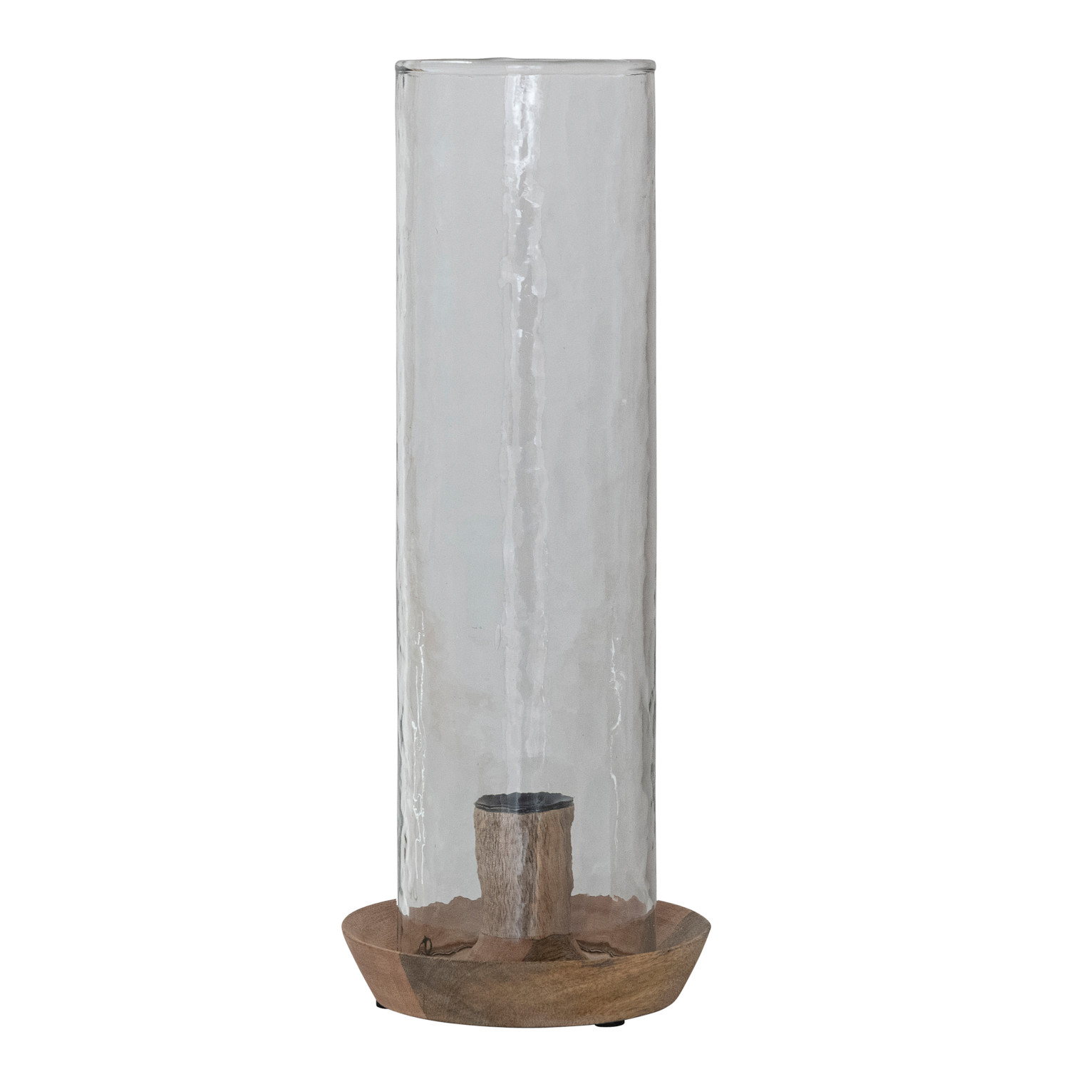 Catalog Name: 5" Round x 12-1/2"H Mango Wood Taper Holder w/ Hammered Glass Hurricane, Natural, Set of 2