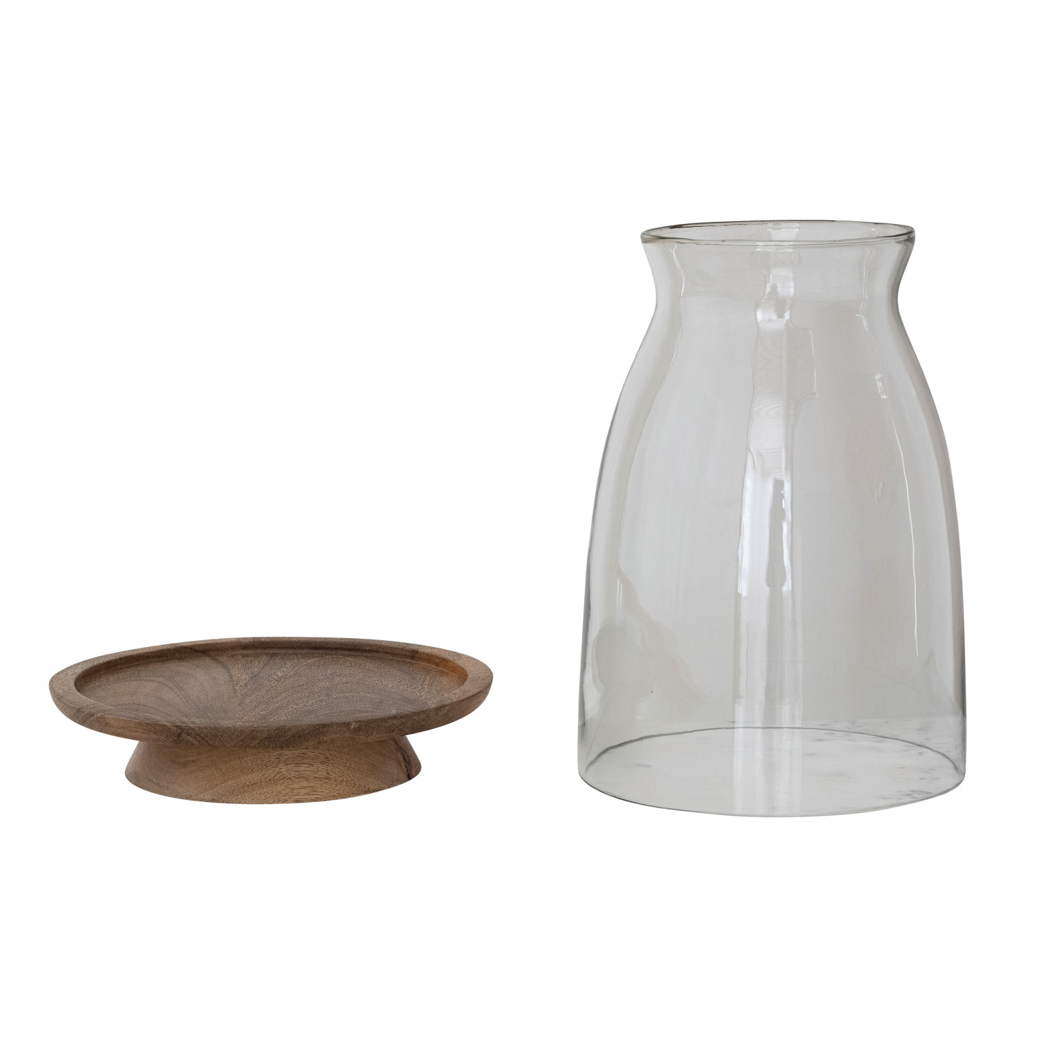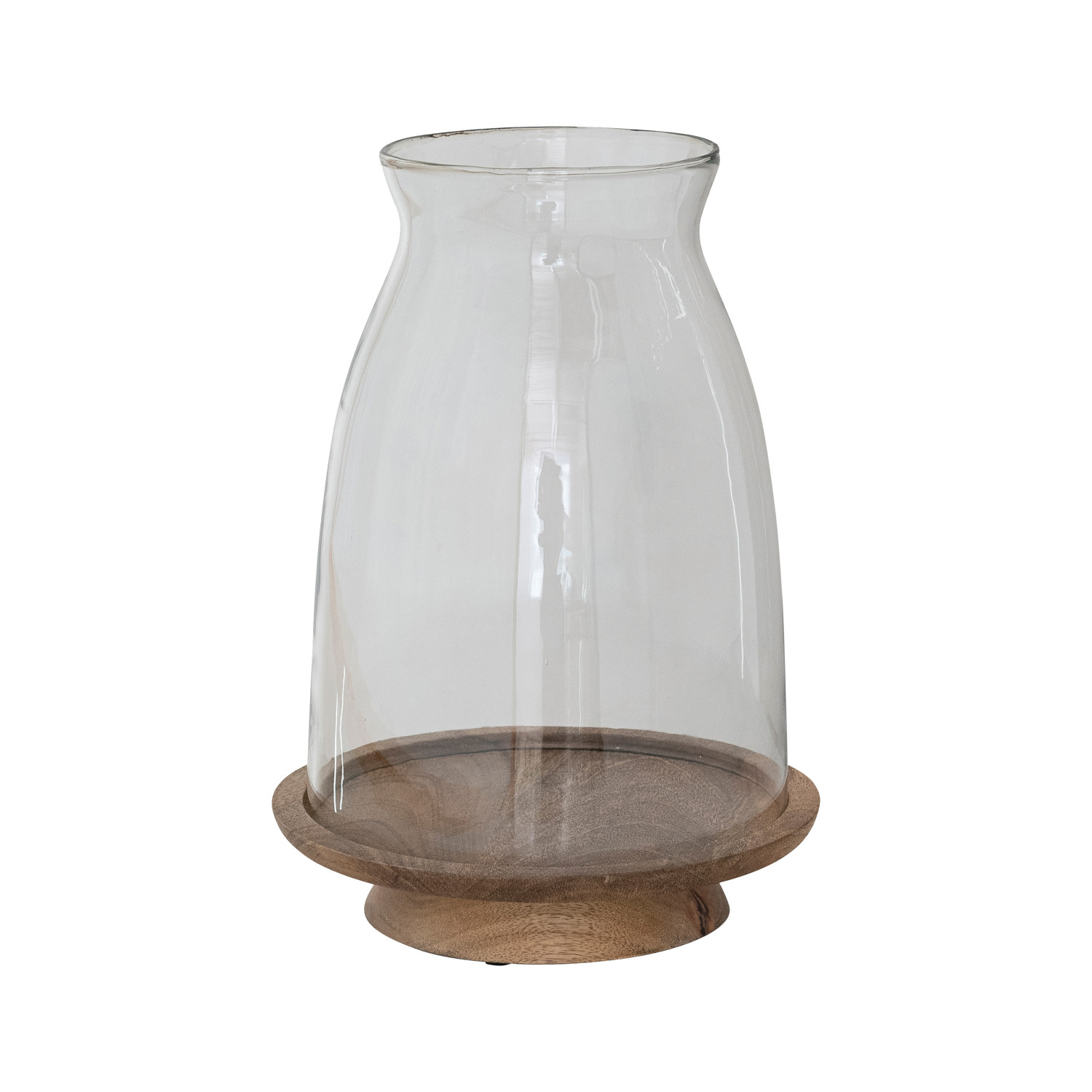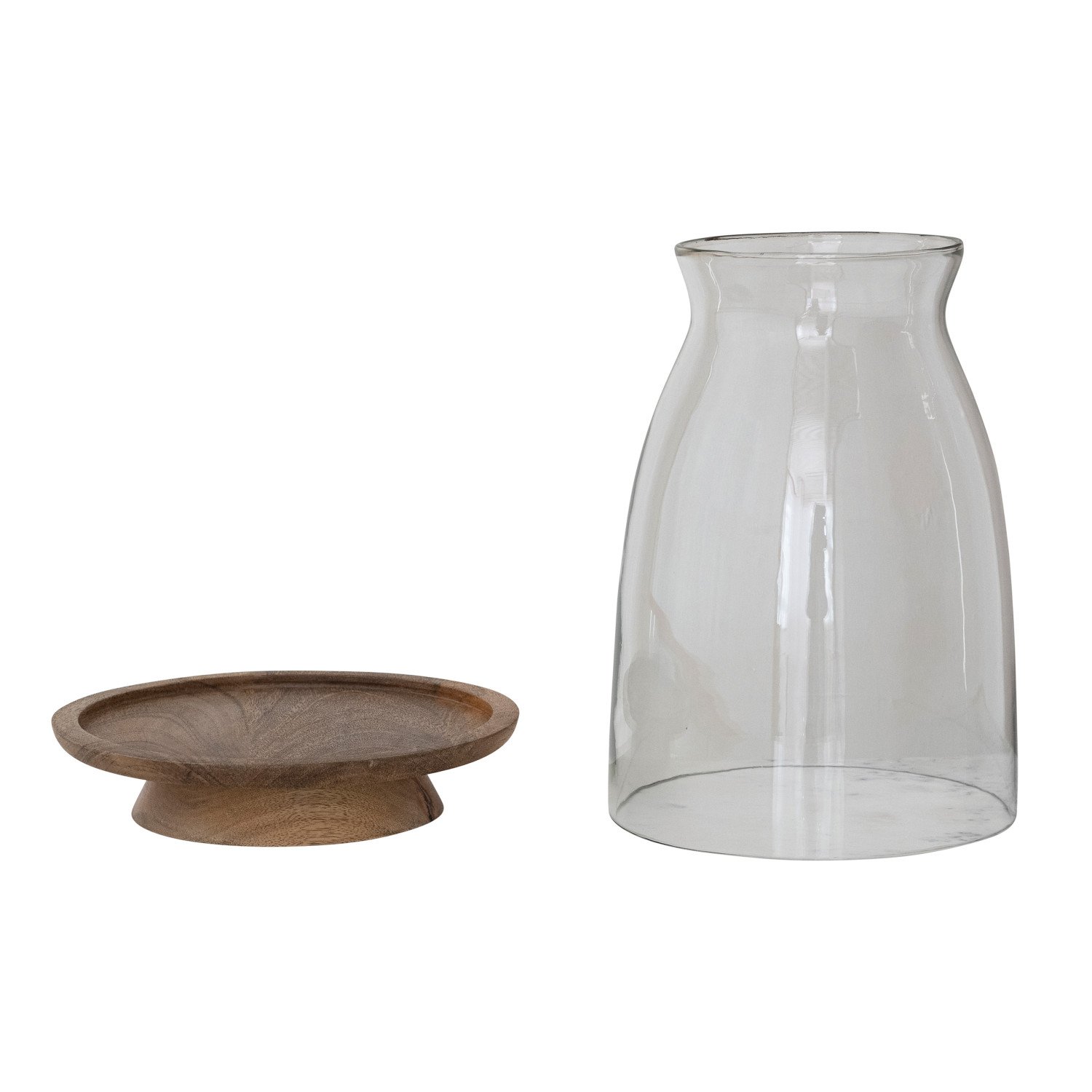 Glass Hurricane with Mango Wood Base, Natural, Set of 2