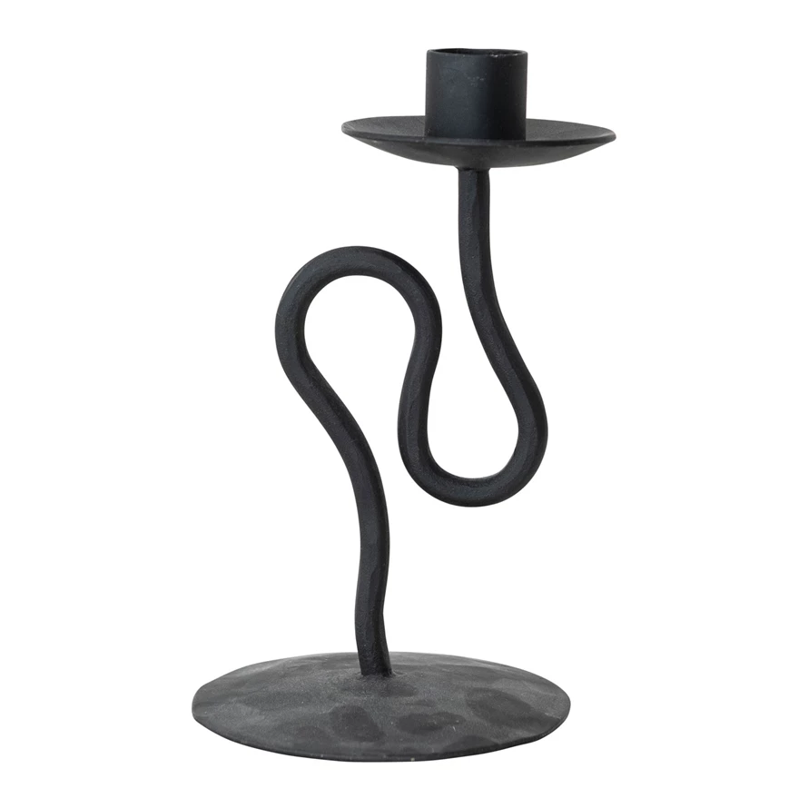 Hand-Forged Iron Abstract Shaped Taper Holder, Black