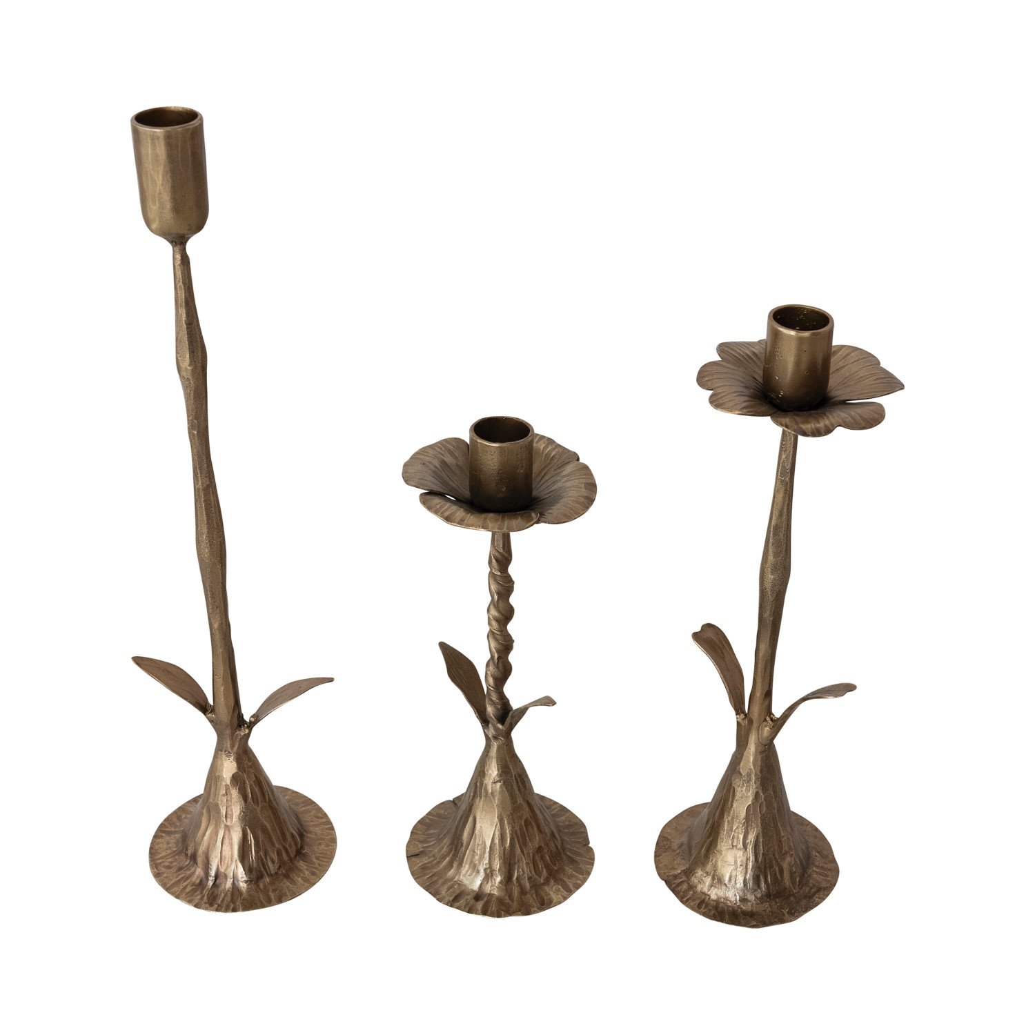 Hand-Forged Metal Stem Shaped Taper Holder, Antique Brass Finish