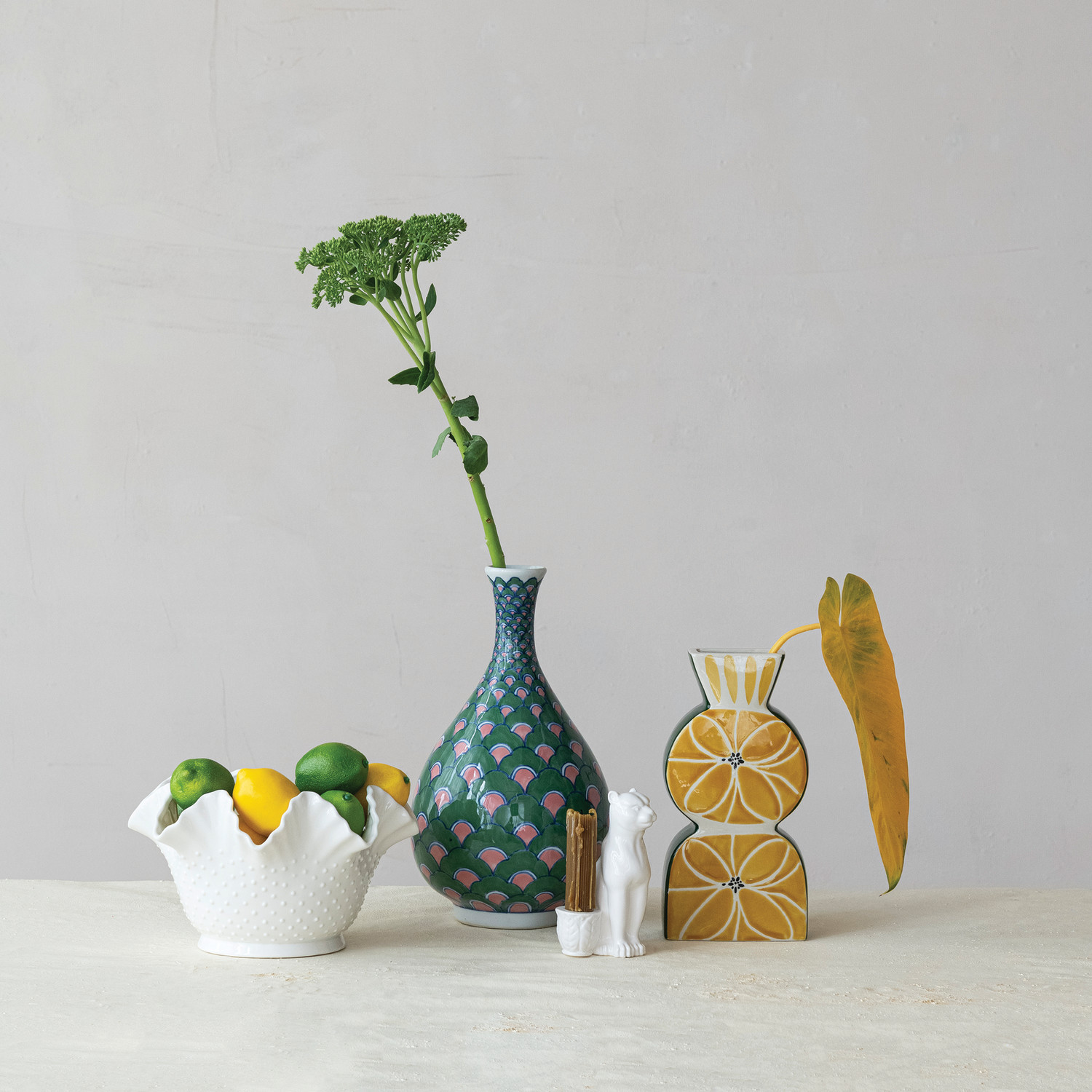 Catalog Name: 3-1/2"L x 3-1/4"W x 5-3/4"H Stoneware Taper Holder w/ Leopard, White