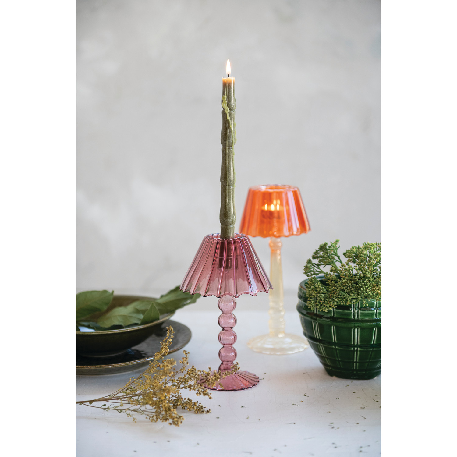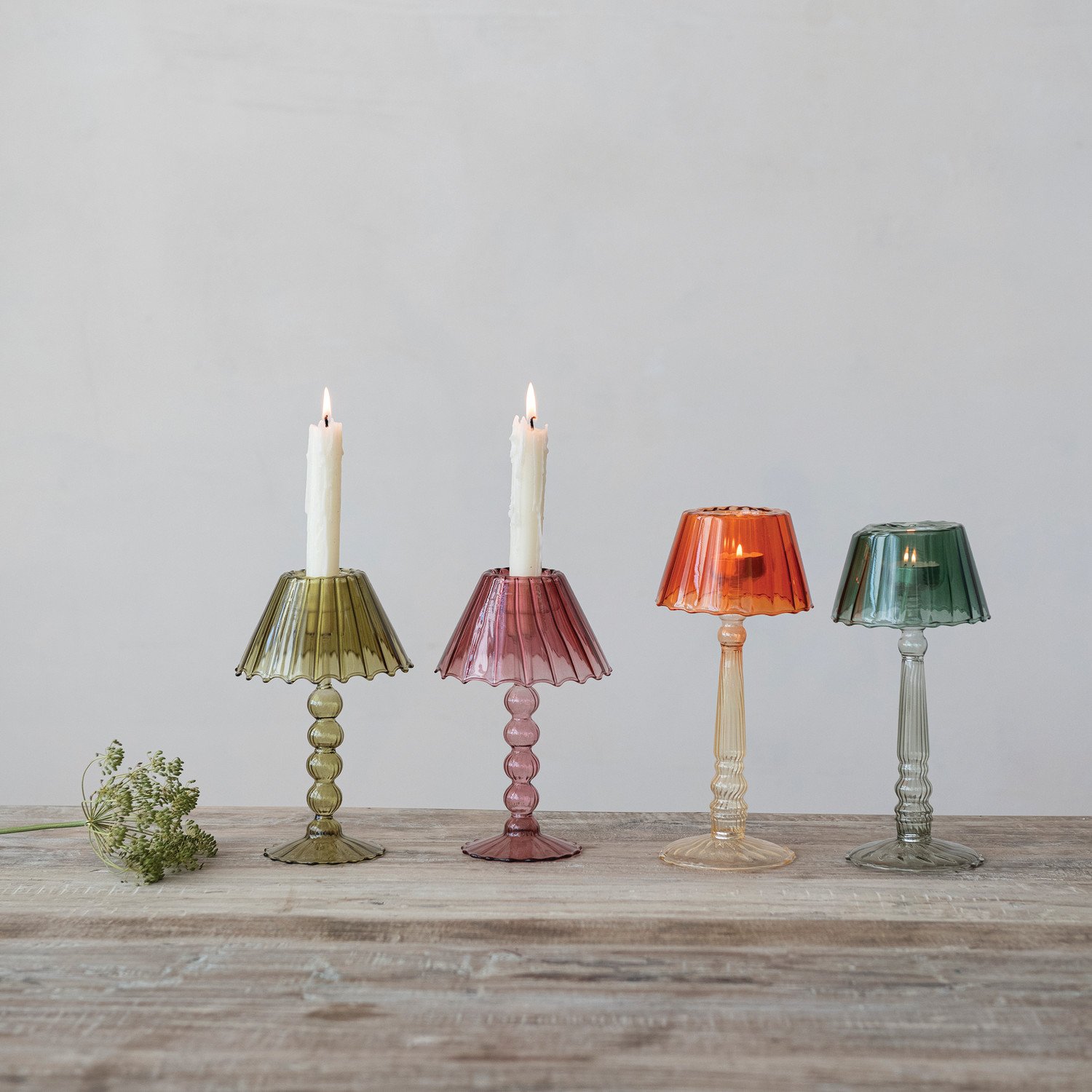 Glass Scalloped Table Light Tealight/Taper Holder, 2 Colors