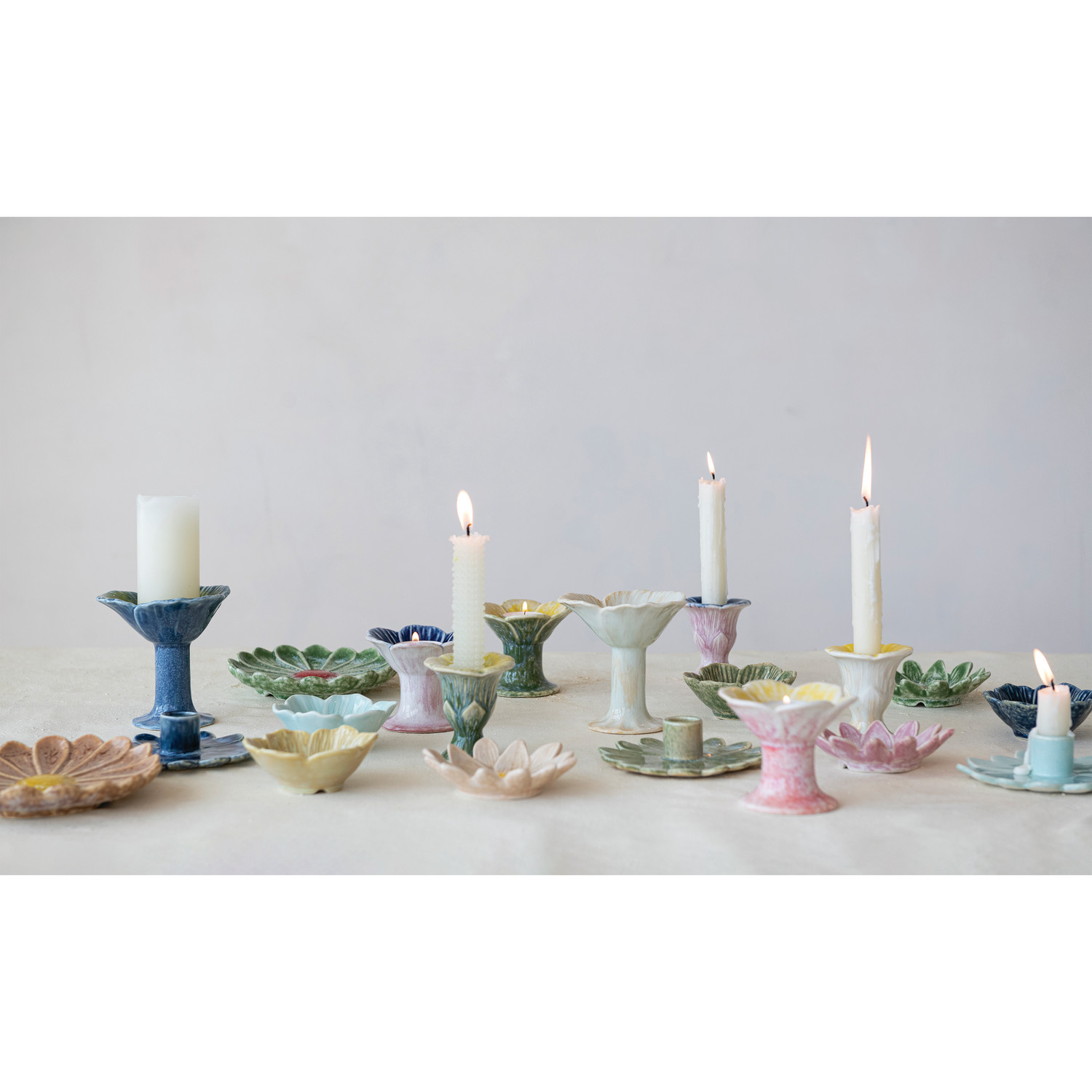 Stoneware Flower Shaped Footed Tealight Holder, 3 Styles (Each One Will Vary)