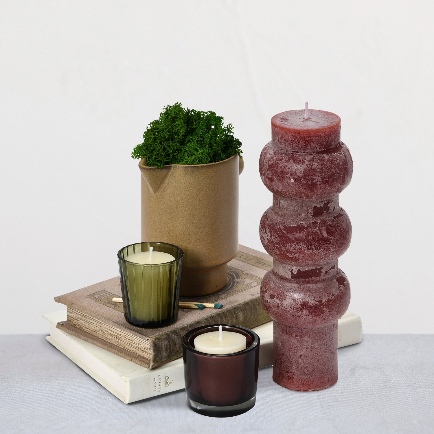 This intricately carved totem pillar candle showcases a striking sculpturesque design. Mix and match the hues and sculptural silhouettes of our artfully crafted totems and tapers for a refined candlelight arrangement on a dining table or mantelpiece.