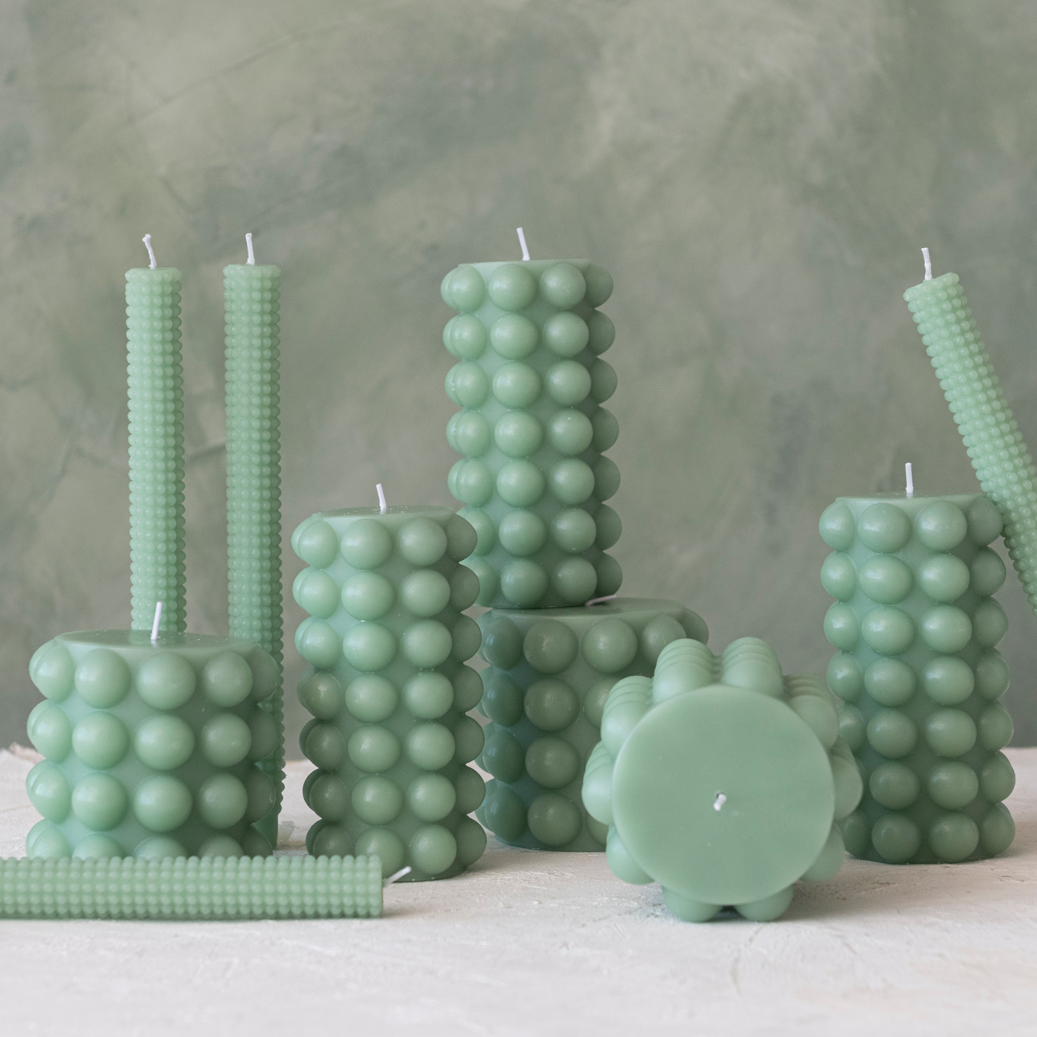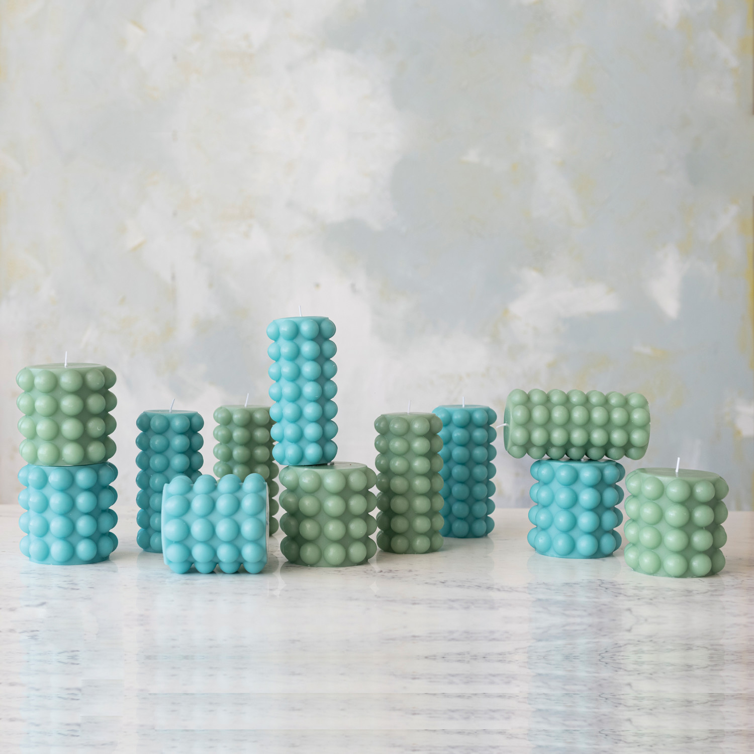 Unscented Hobnail Pillar Candle, Mint Color (Approximate Burn Time 80 Hours)