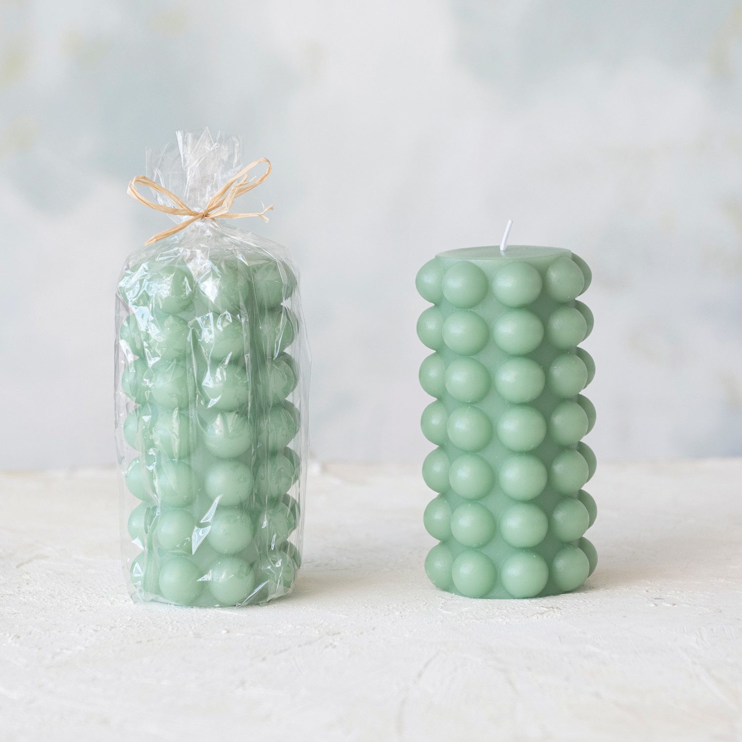 Unscented Hobnail Pillar Candle, Mint Color (Approximate Burn Time 50 Hours)
