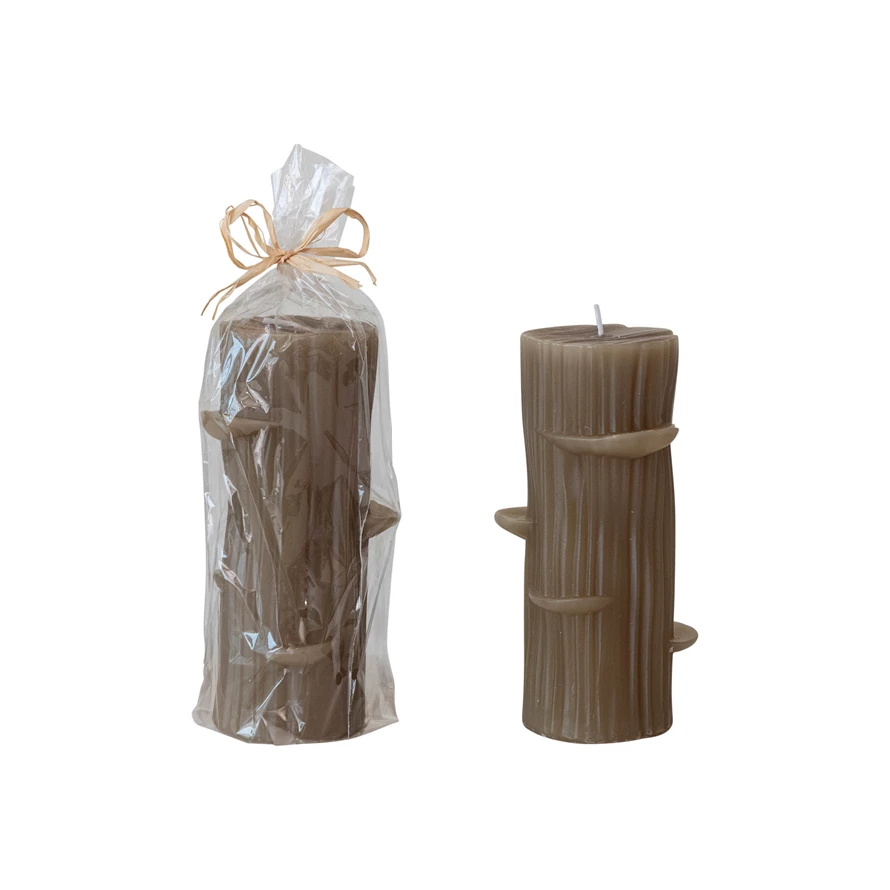 Unscented Log Shaped Candle w/ Mushrooms, Olive Color