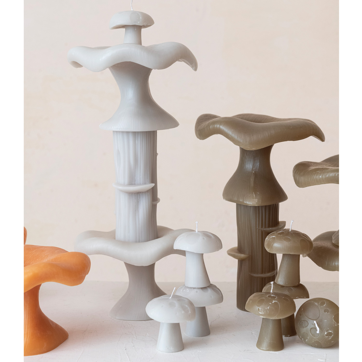 This unscented mushroom-shaped candle is a beautiful way to add whimsy and charm to the home. The candle is made of paraffin wax that is safe and long-lasting. The candle has a round shape and a mushroom-like cap in various colors, such as cream, olive, grey, and orange, and complements any garden, cottagecore, farmhouse, cabin, or woodland-style home. The candle measures 6.75 inches in length, 6.75 inches in width, and 4.5 inches in height and has an approximate burn time of 8 hours. Use this candle for decorating or creating a cozy atmosphere in the home. This unscented mushroom-shaped candle is a versatile and beautiful piece to enhance the space. Create an inviting atmosphere with these candle collections.