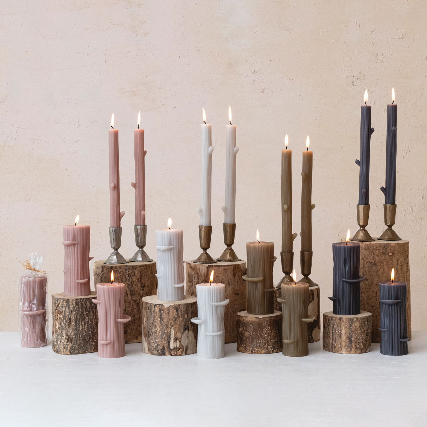 Catalog Name: 3-1/4"L x 1-3/4"W x 10-1/4"H Unscented Twig Shaped Taper Candles in Box, Grey, Set of 2 (Approximate Burn Time 8 Hours)