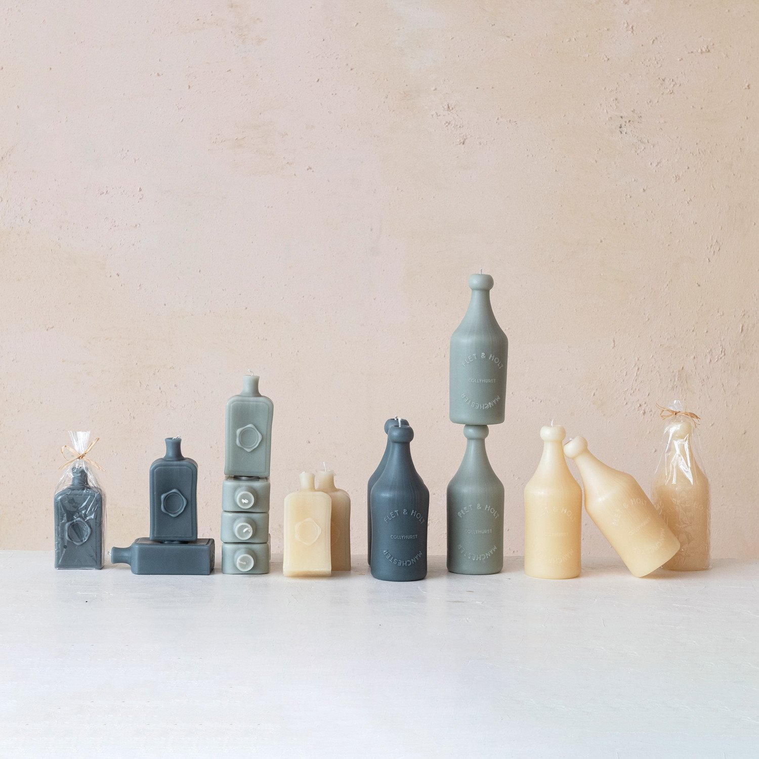 Unscented Embossed Vintage Bottle Shaped Candle, Teal