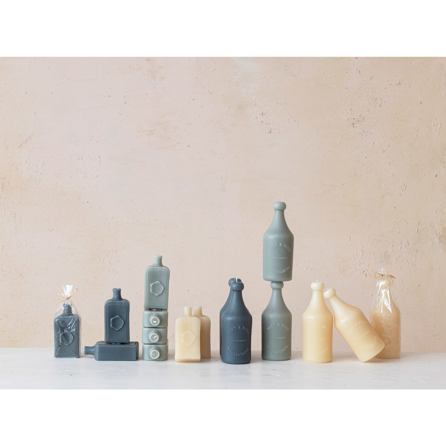 This unscented embossed bottle-shaped candle is a beautiful way to add elegance and charm to the home. The candle is made of paraffin wax that is safe and long-lasting. The candle has a round shape and a bottle-like design with an embossed pattern that adds texture and interest to the candle in various colors, such as cream, blue, and grey. The candle measures 2.75 inches in diameter and 7.5 inches in height and has an approximate burn time of 72 hours. Use this candle for decorating or creating a cozy atmosphere in the cottagecore, farmhouse, French country, lodge, or cabin-style home. This unscented embossed bottle-shaped candle is a versatile and beautiful piece that will enhance the space. Create an inviting atmosphere with these candle collections.