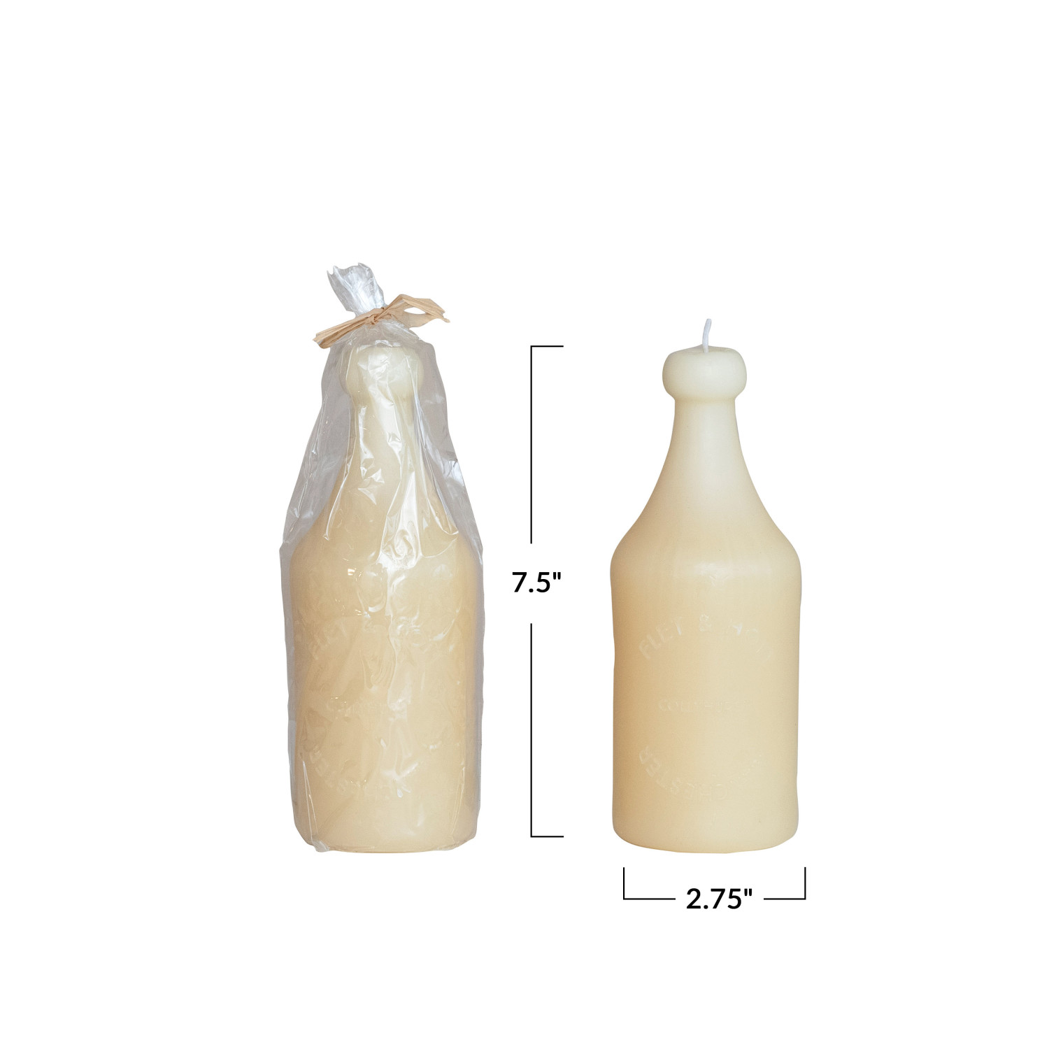 Catalog Name: 2-3/4" Round x 7-1/2"H Unscented Vintage Bottle Shaped Candle, Cream Color (Est. Burn Time 20 Hours)