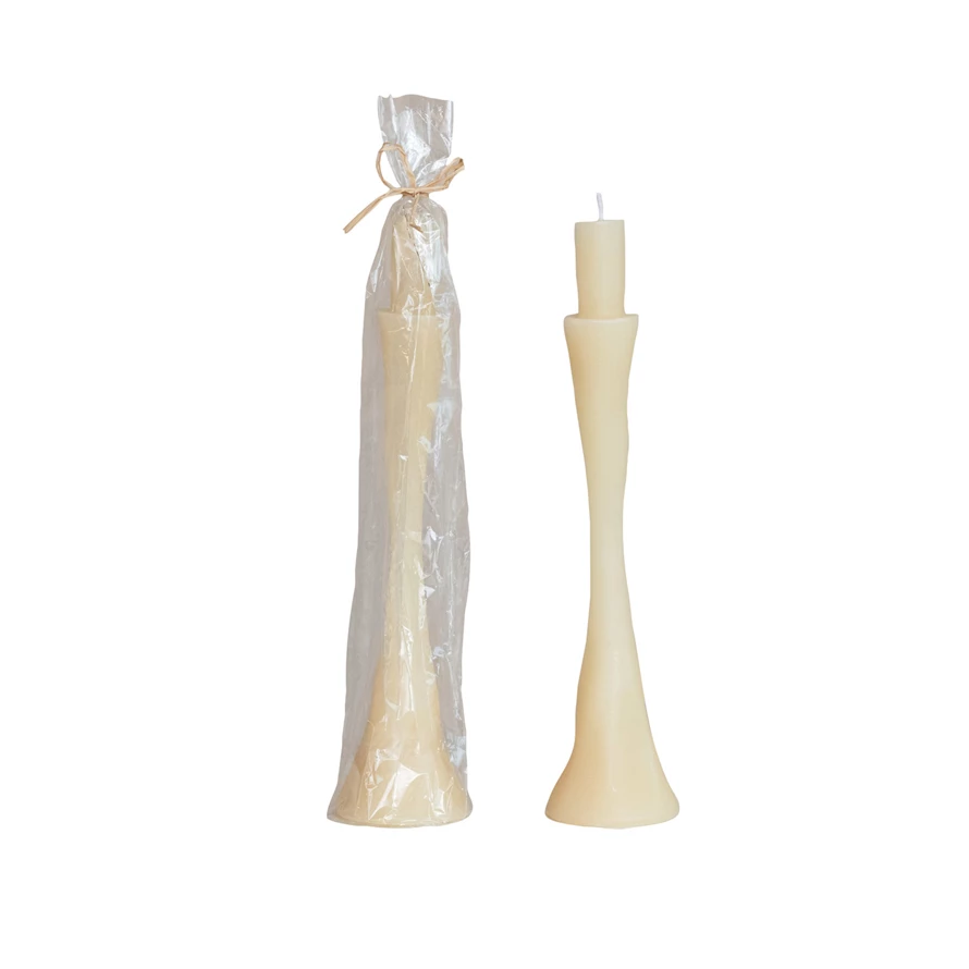Unscented Taper in Taper Holder Shaped Candle, Cream Color