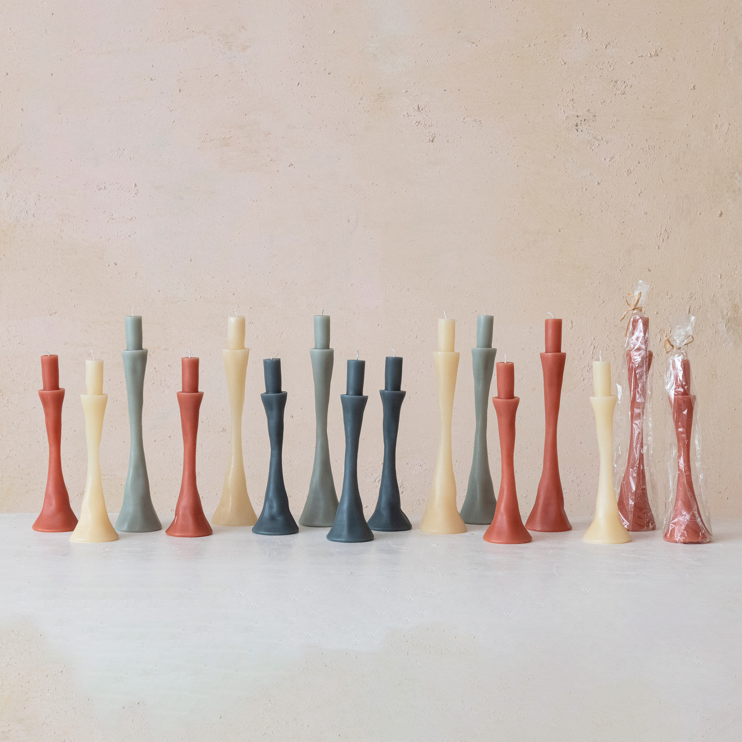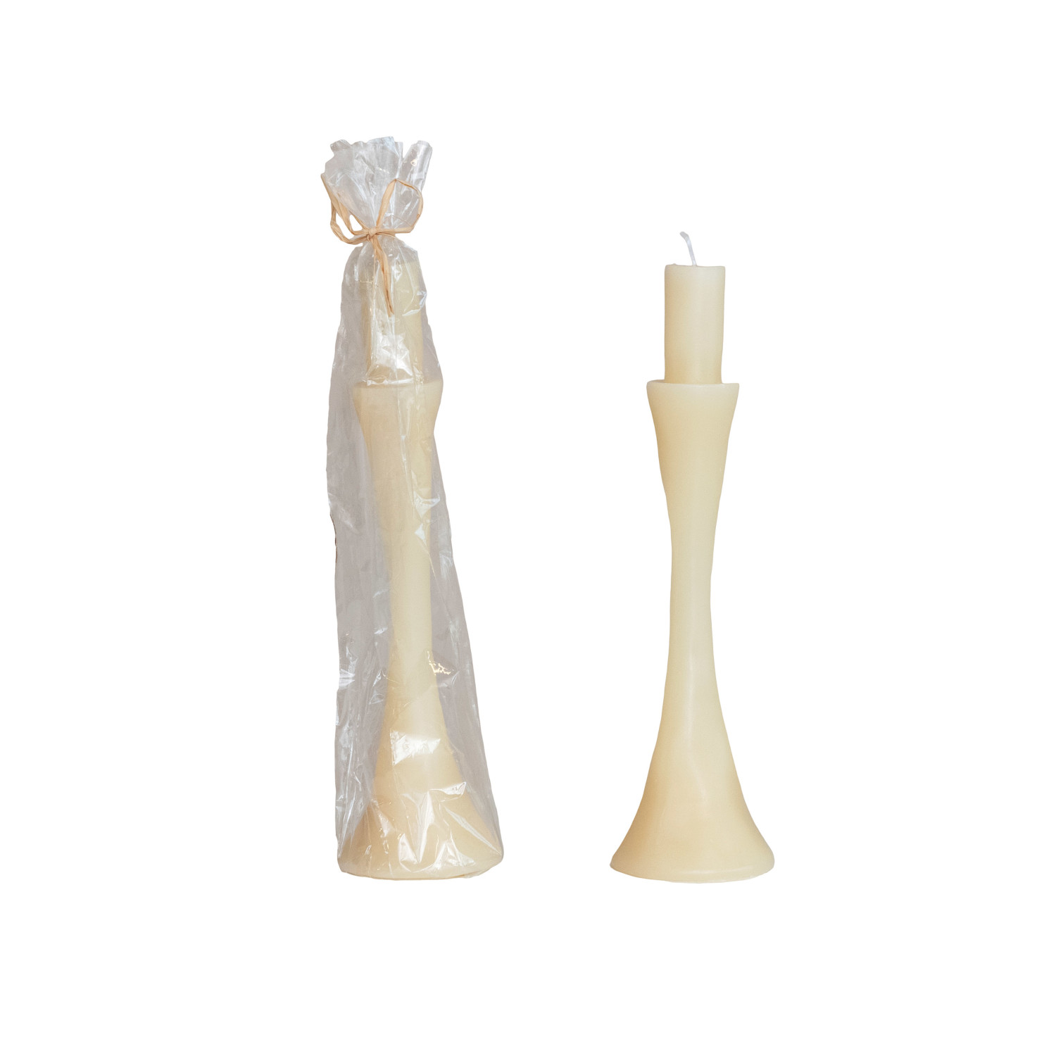 Unscented Taper in Taper Holder Shaped Candle, Cream Color