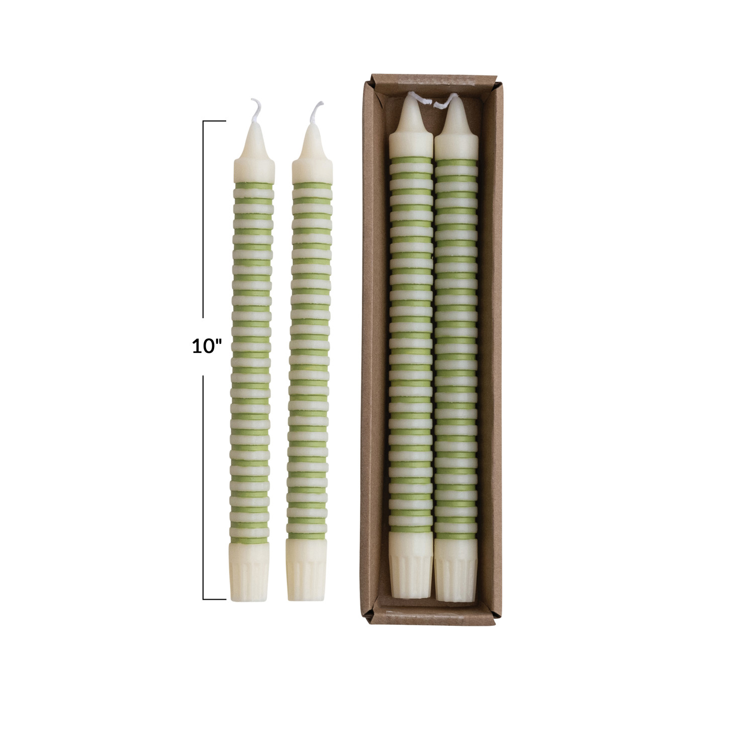 Unscented Striped Taper Candles in Box, Green, Set of 2 (Est. Burn Time 6 Hours)