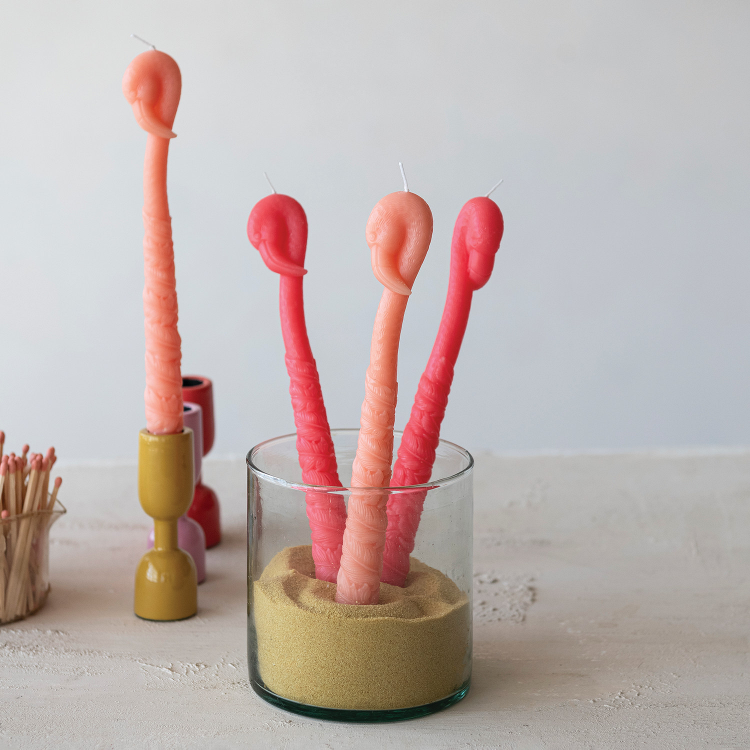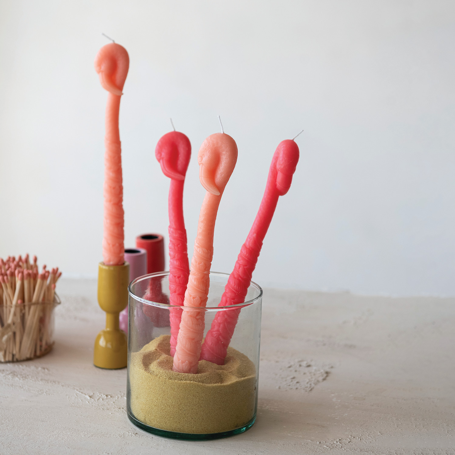 Unscented Flamingo Shaped Taper Candles in Box, Peach Color, Set of 2