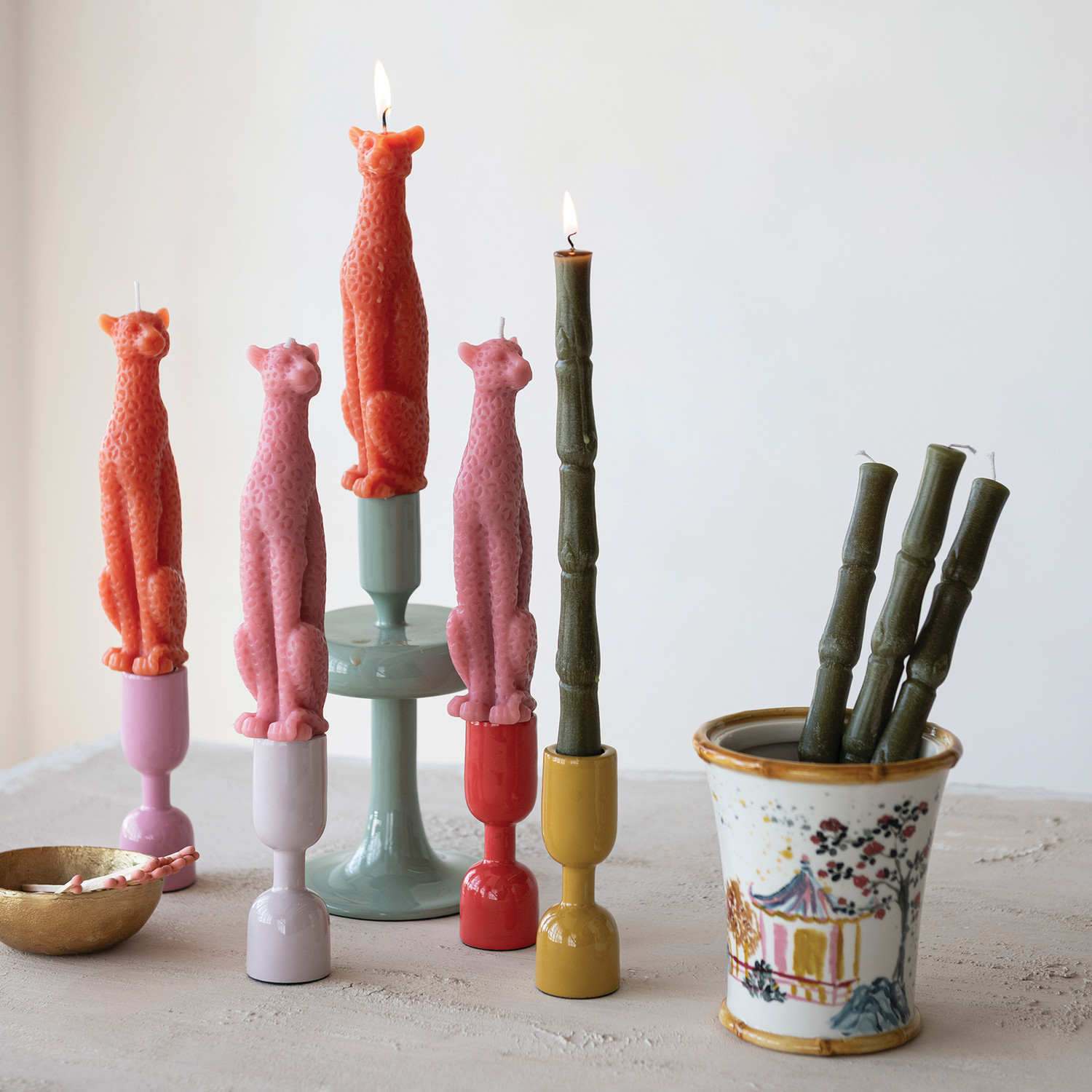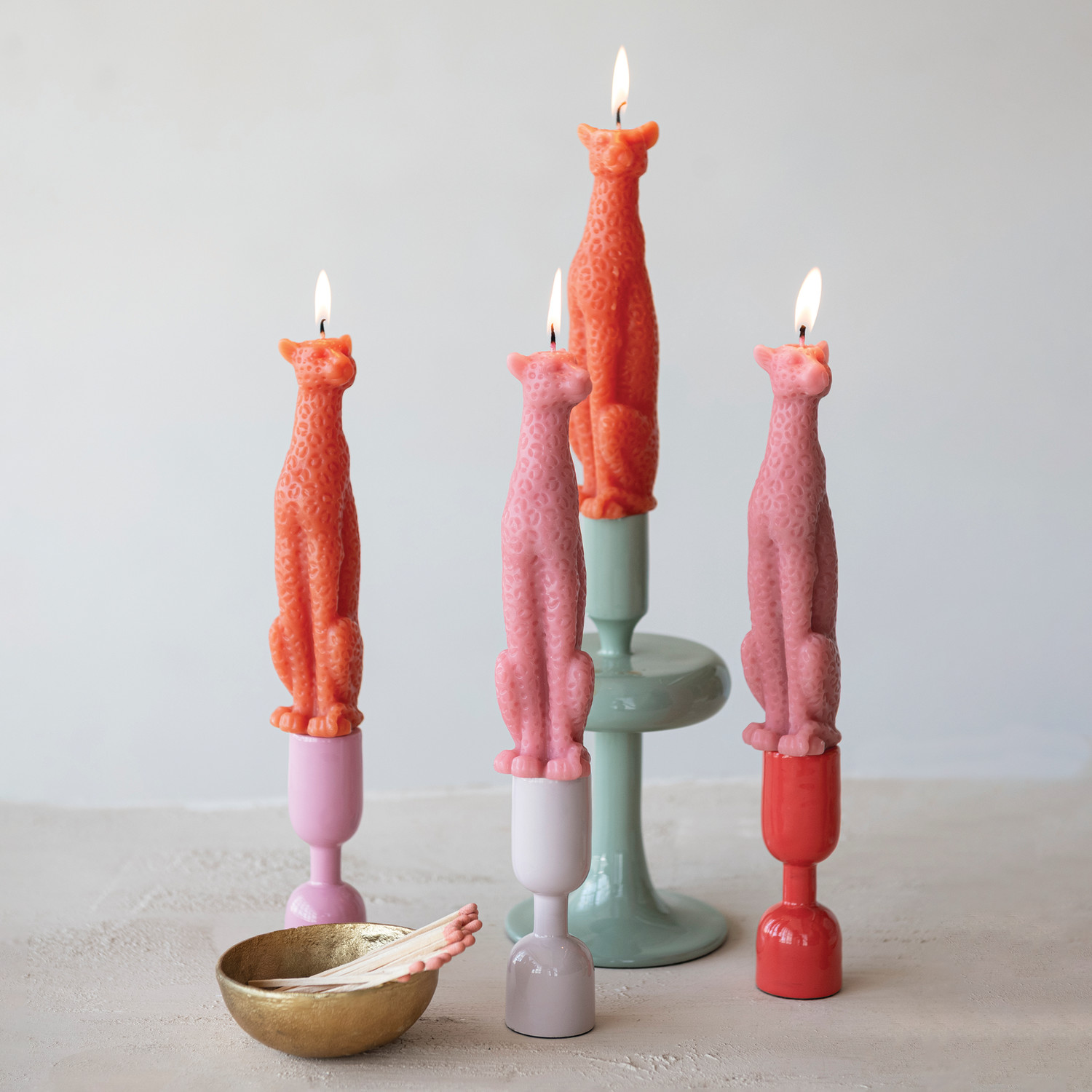 Unscented Leopard Shaped Taper Candles in Box, Coral Color, Set of 2