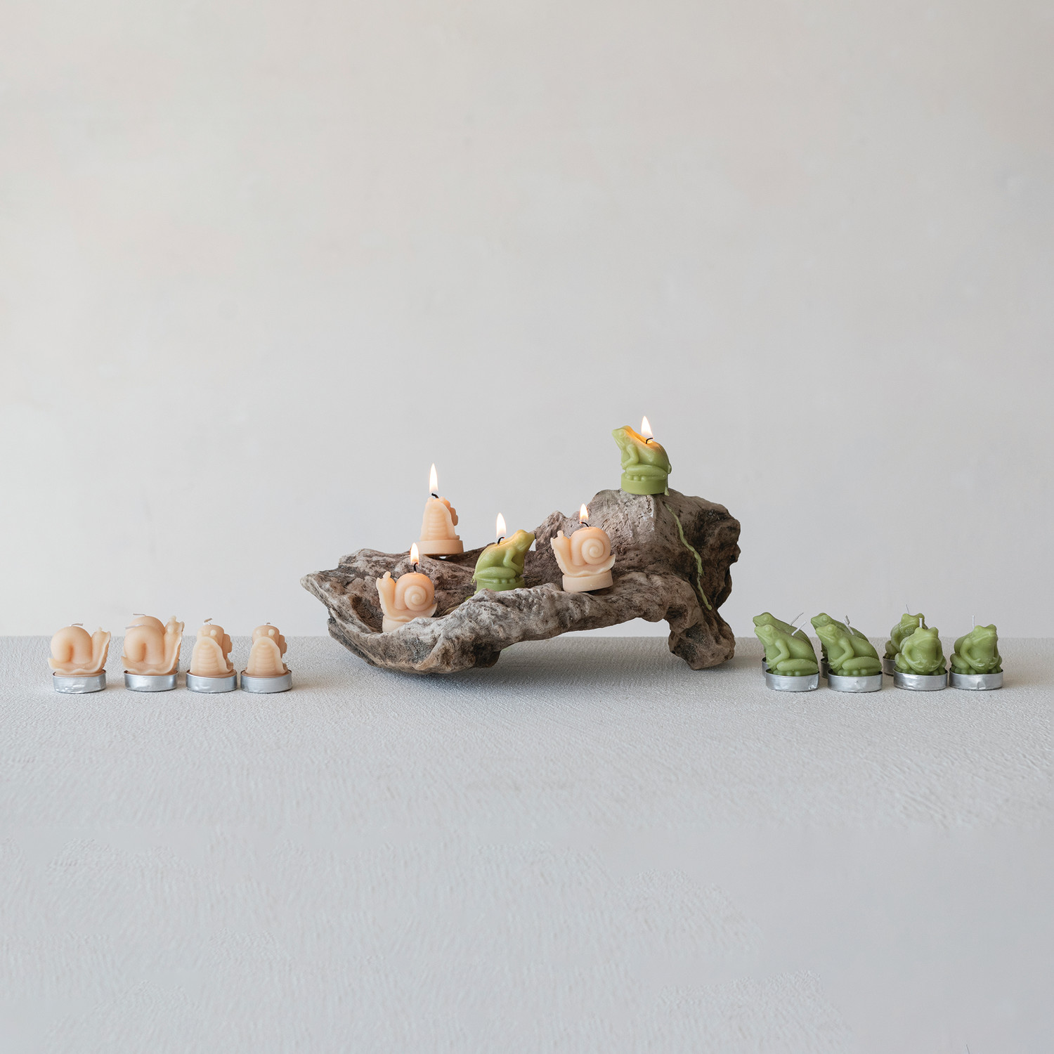 Unscented Snail Shaped Tealights in Box, Cream Color, Set of 9