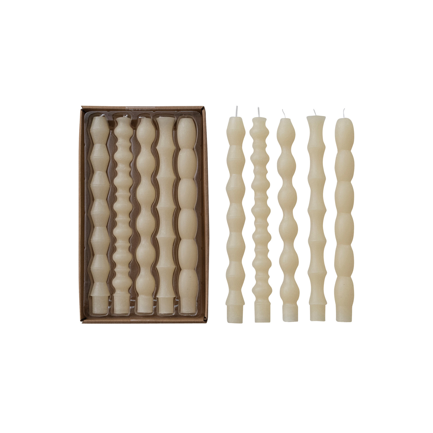Unscented Taper Candles in Box, Cream Color, Set of 5