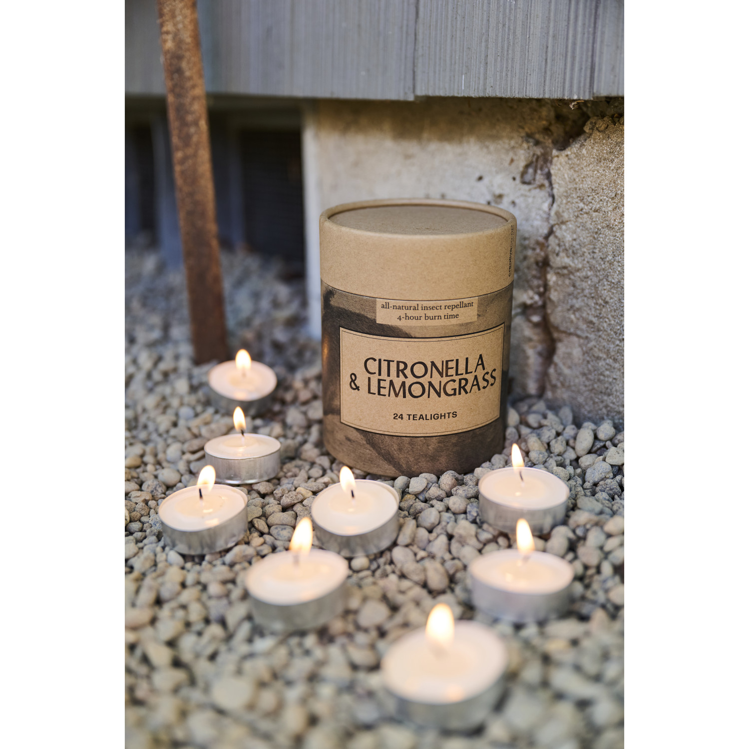 Citronella & Lemongrass Scented Tealights in Box, Natural, Set of 24
