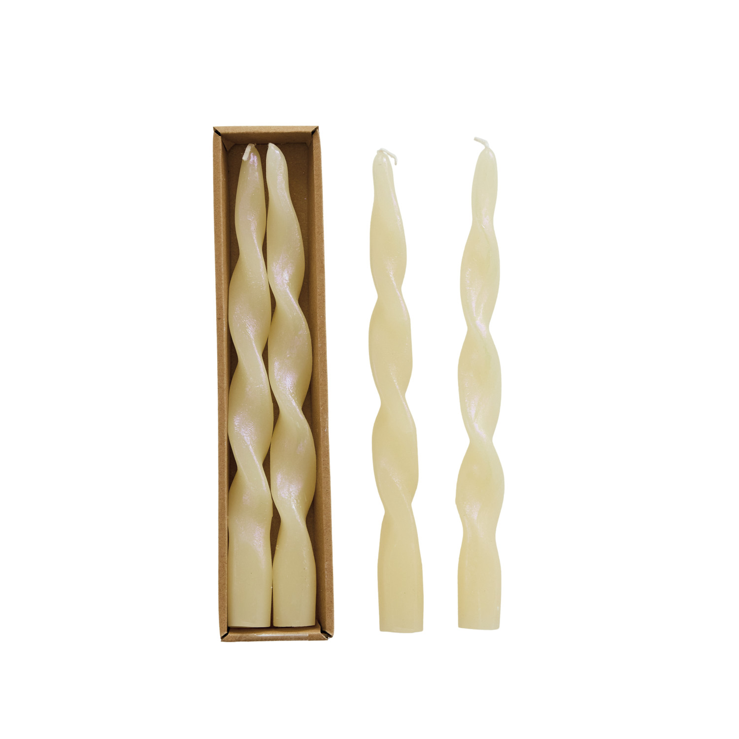Unscented Twisted Taper Candles in Box, Iridescent Rainbow Finish, Cream Color, Set of 2