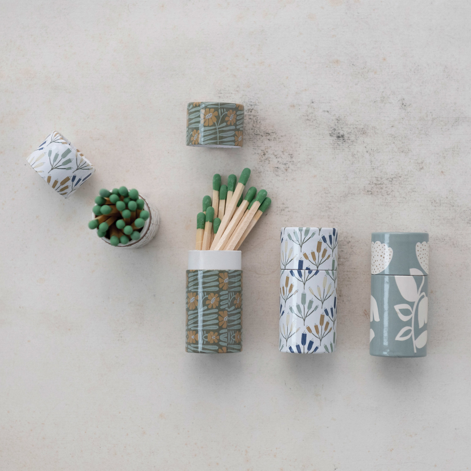 Safety Matches in Tube Matchbox w/ Flowers, 3 Styles