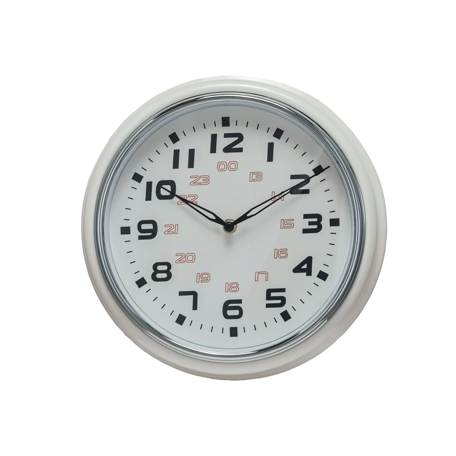 Catalog Name: 12" Round Metal Wall Clock, Cream Color (Requires 1-AA Battery)