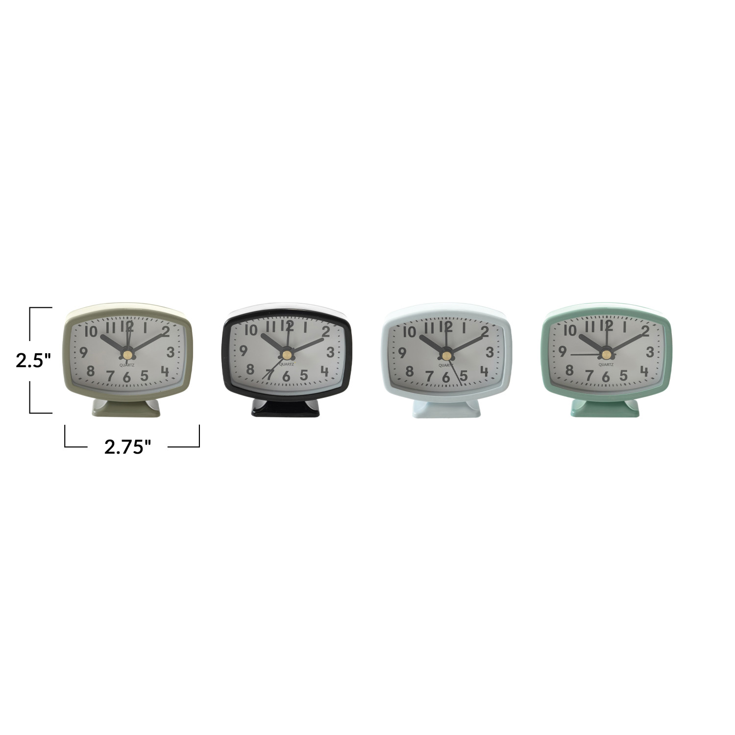 Catalog Name: 2-3/4"W x 2-1/2"H Metal Footed Alarm Clock, 4 Colors (Battery Included)