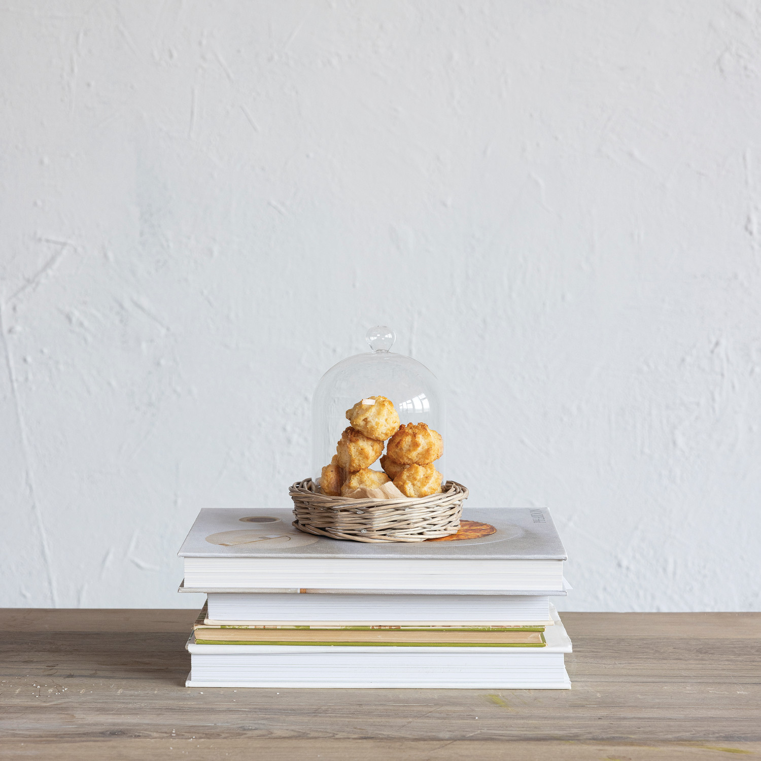 Catalog Name: 5-1/4" Round x 5-3/4"H Decorative Glass Cloche w/ Woven Willow Base, Natural, Set of 2