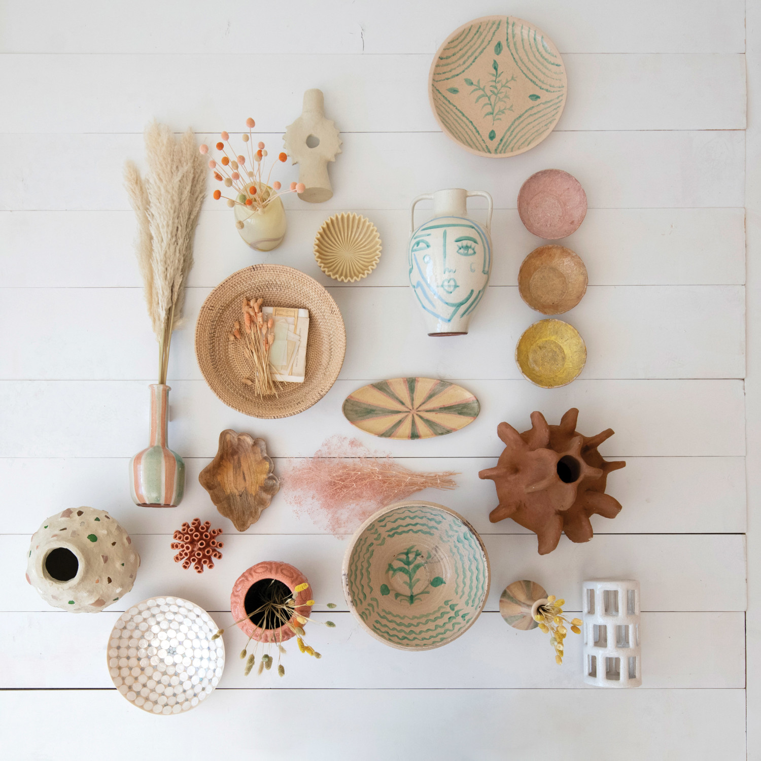 Decorative Hand-Painted Terra-cotta Bowl w/ Pattern (Each One Will Vary)