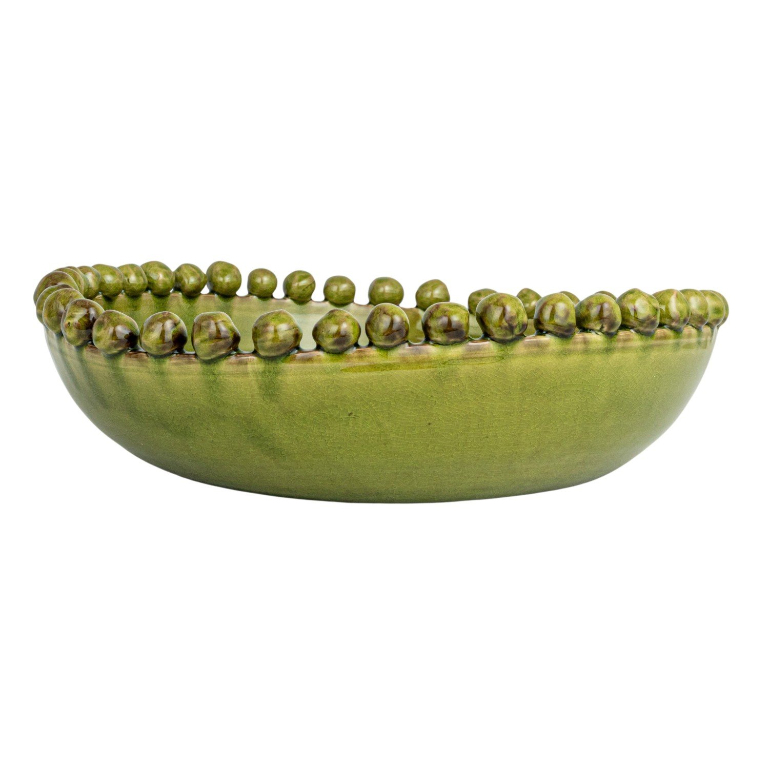 Catalog Name: 16-1/2" Round x 4-1/4"H Decorative Handmade Terra-cotta Bowl w/ Hobnail Edge, Reactive Glaze, Green (Each One Will Vary)