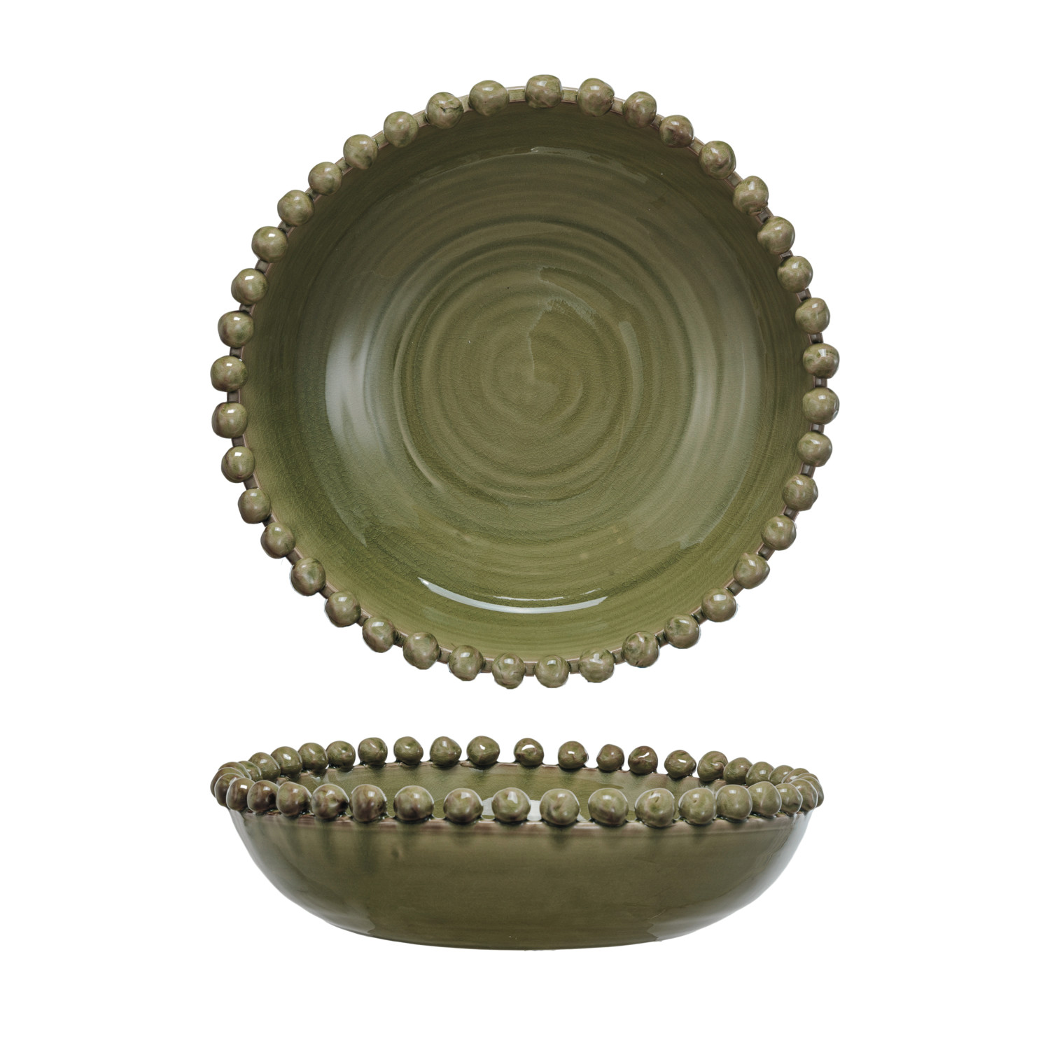 Catalog Name: 16-1/2" Round x 4-1/4"H Decorative Handmade Terra-cotta Bowl w/ Hobnail Edge, Reactive Glaze, Green (Each One Will Vary)