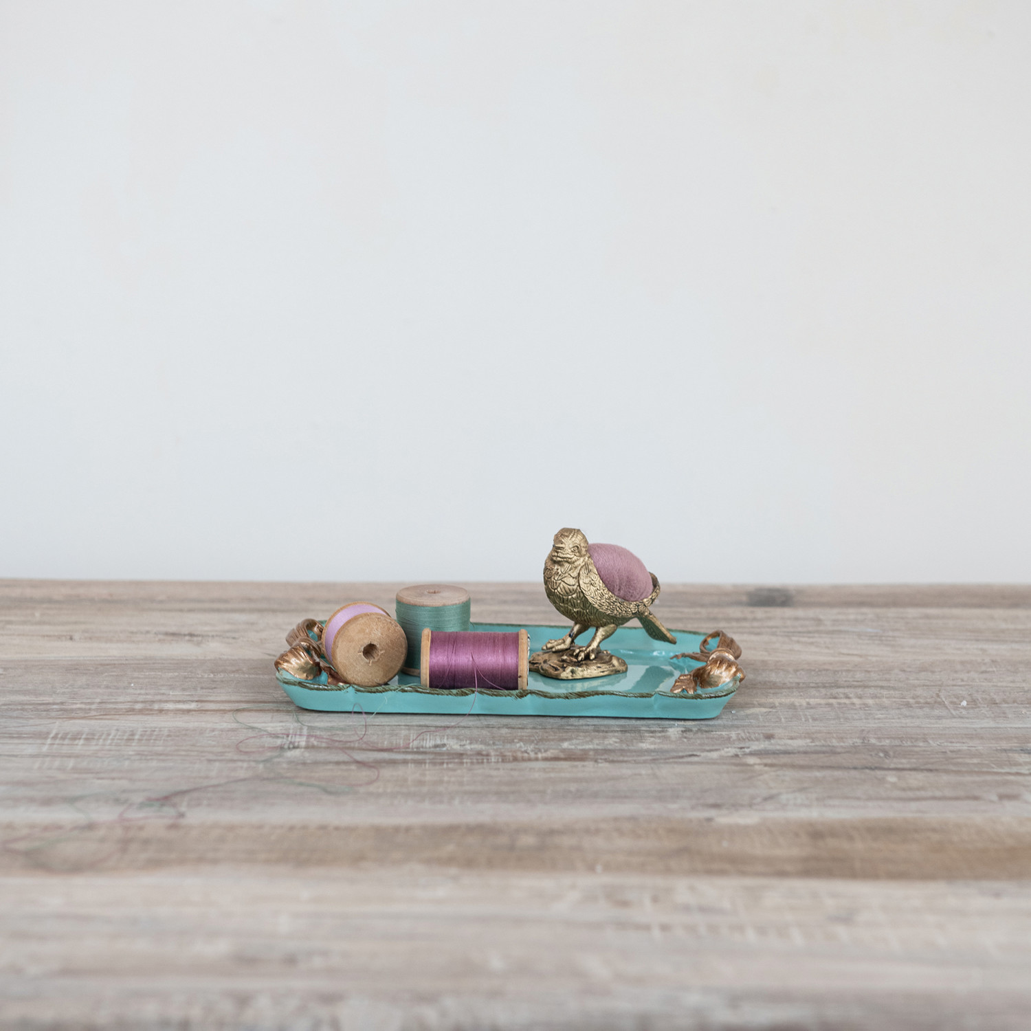 Decorative Metal Tray with Gold Finish Bows, Aqua