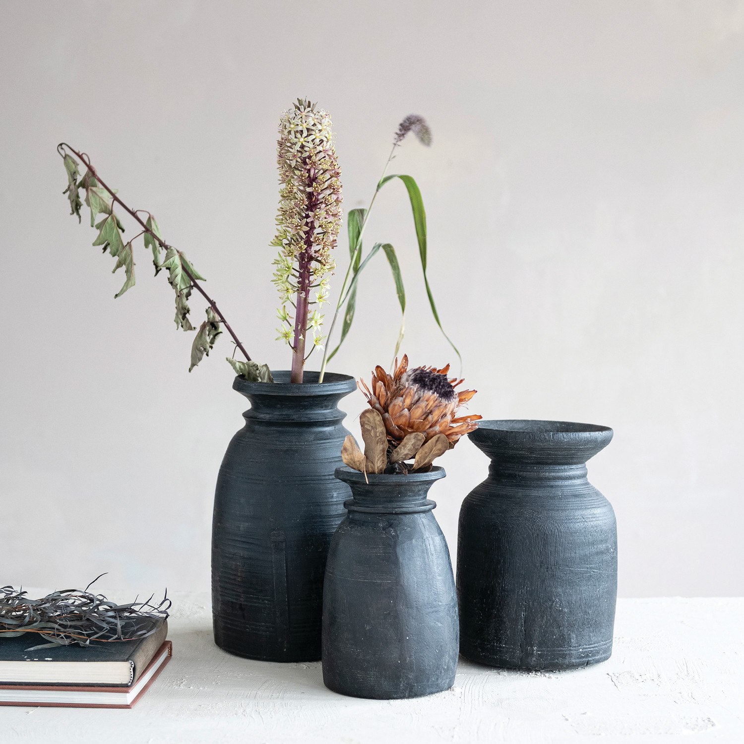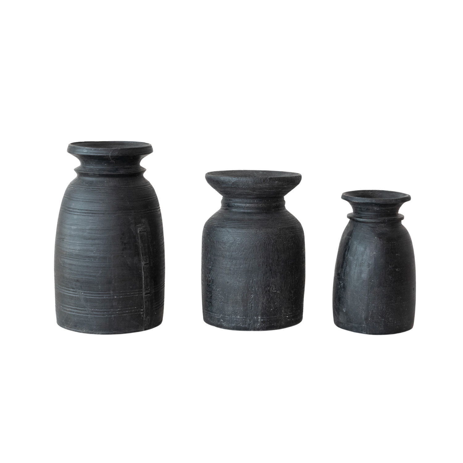 Catalog Name: Approximately 7" Round x 10"H Found Wood Container, Black (Each One Will Vary)