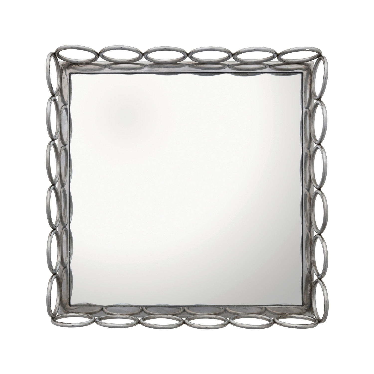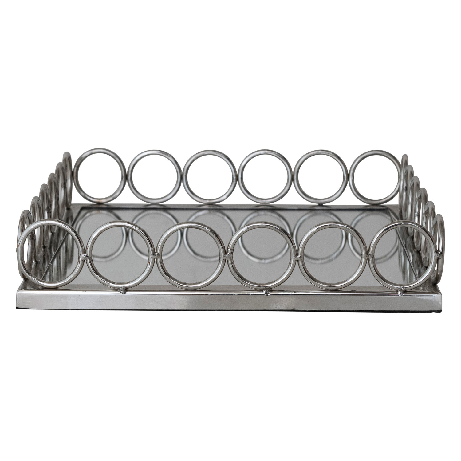 Catalog Name: 12" Square x 2-1/2"H MDF & Metal Ring Mirrored Tray, Nickel Finish