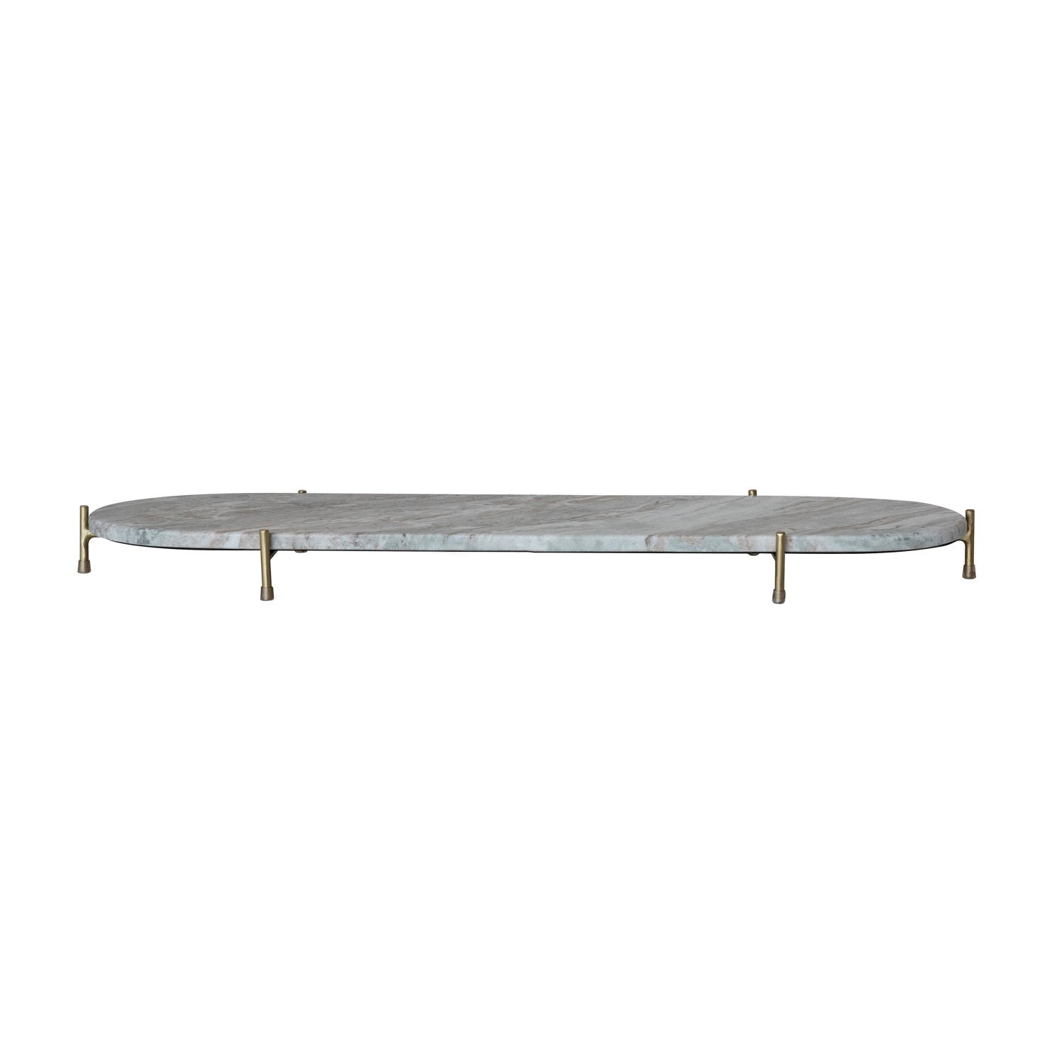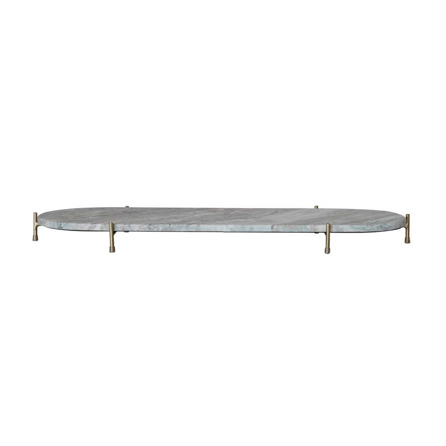 Catalog Name: 32"L x 9-1/2"W x 2-1/2"H Oval Decorative Marble Tray w/ Stand, Grey Melange & Gold Finish, Set of 2, Truck Ship (Each One Will Vary)