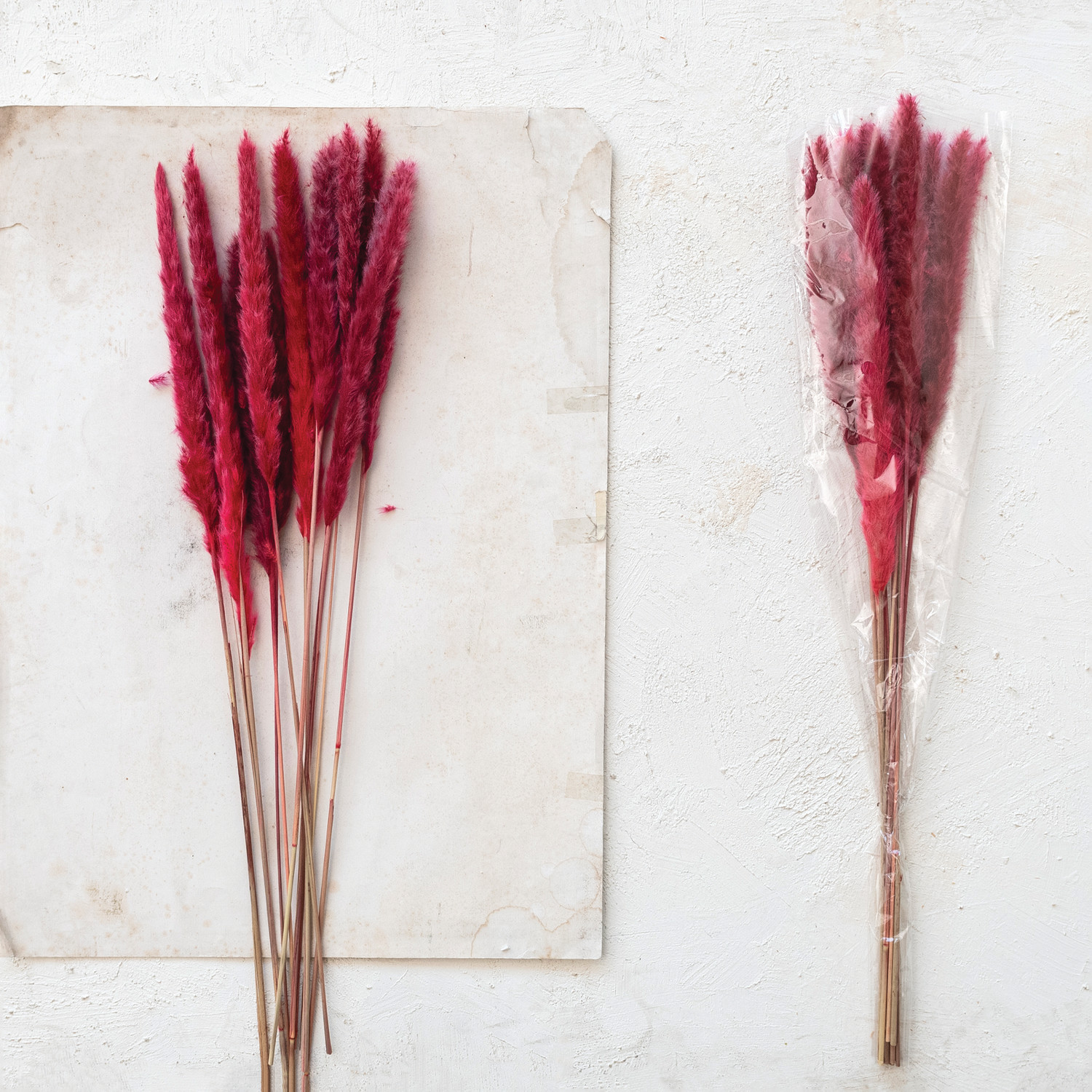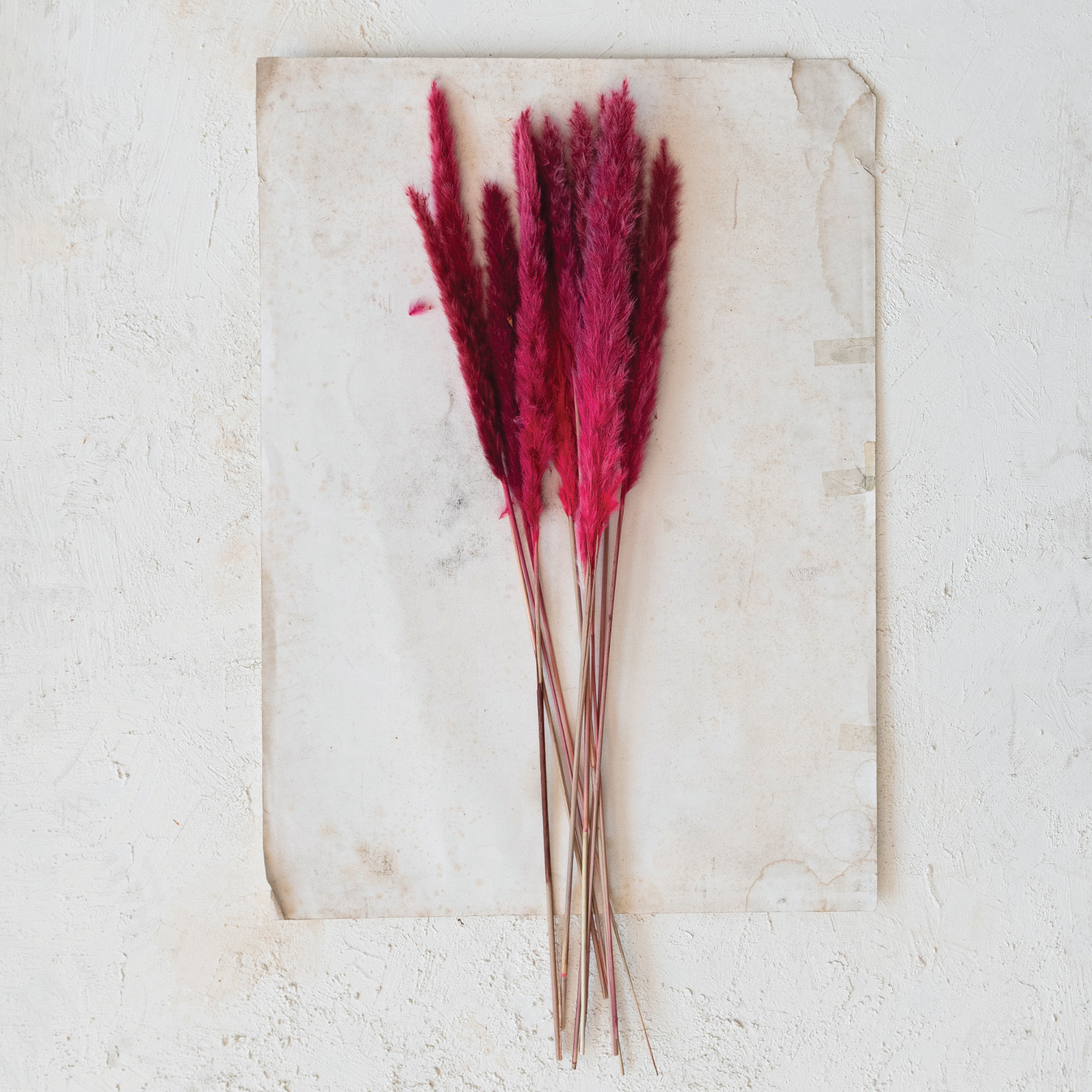 Catalog Name: 25"H Dried Natural Pampas Grass Bunch, Fuchsia Color (Contains 10 Pieces)